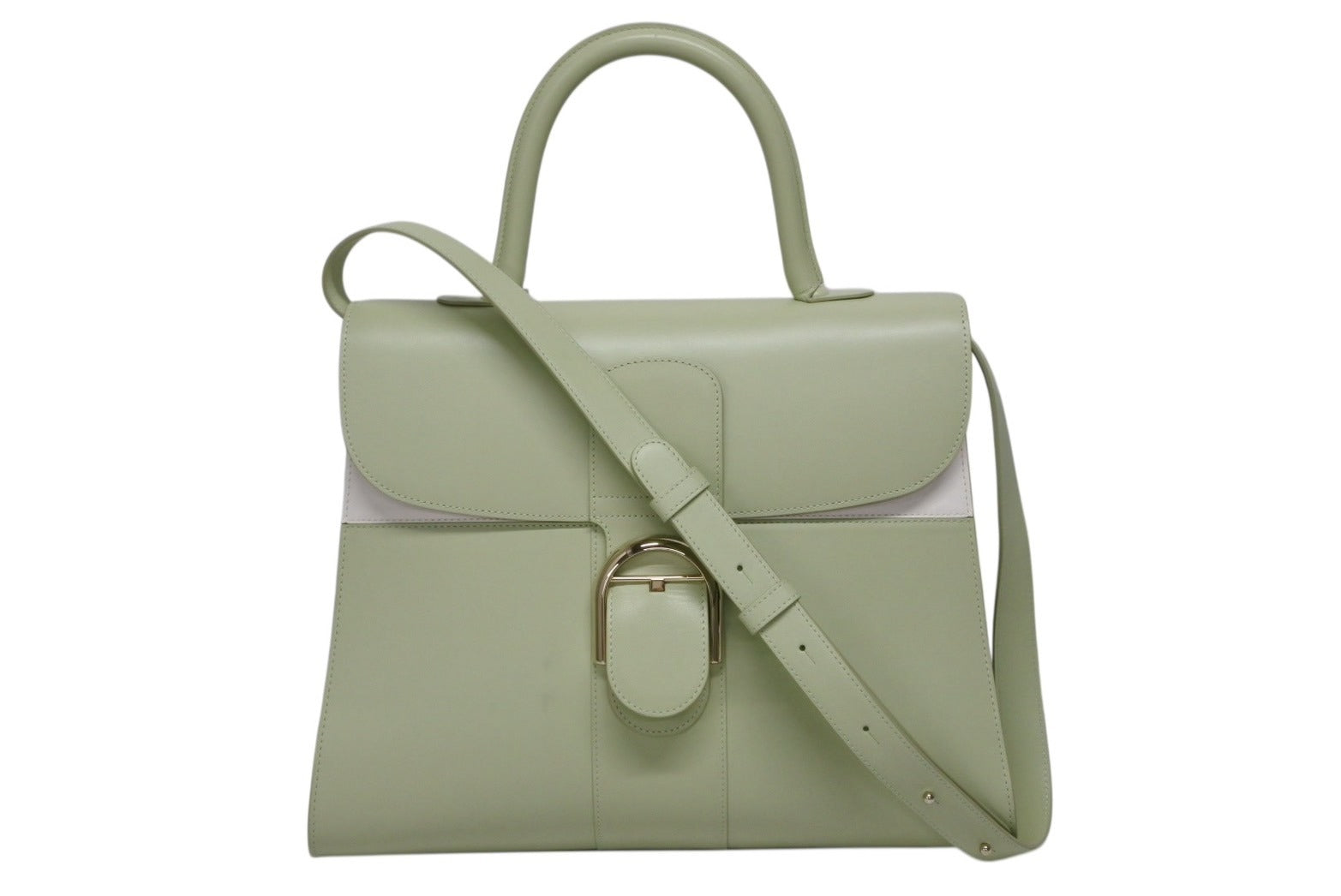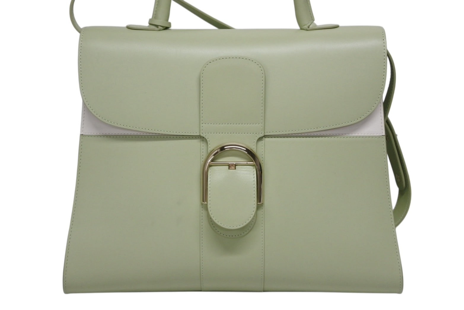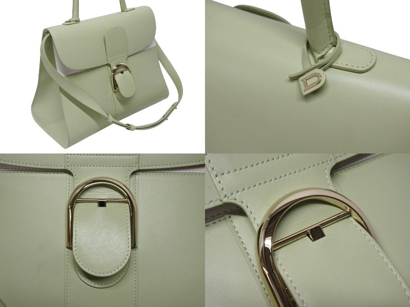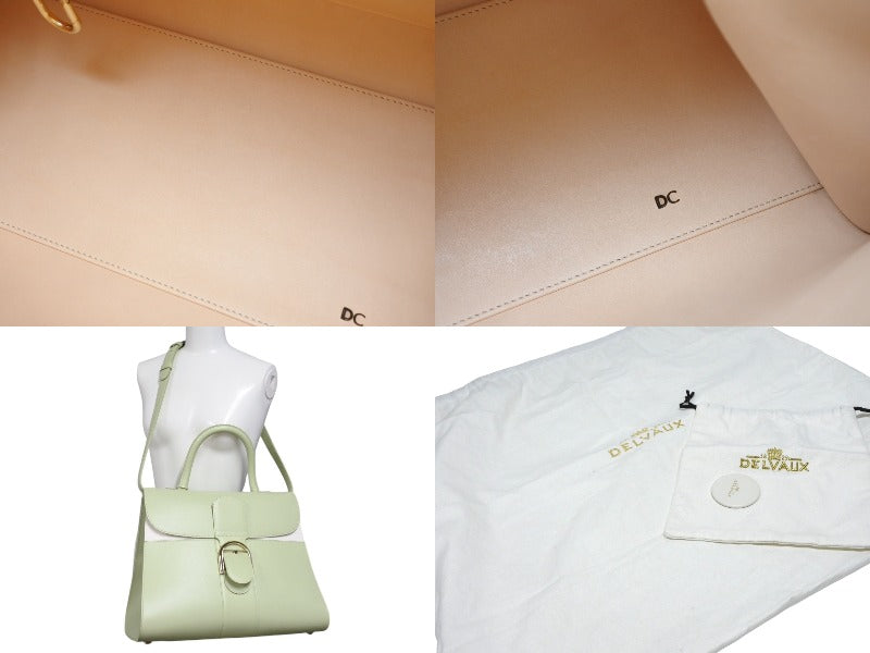 極美品 DELVAUX デルボー Brillant GM ブリヨンGM 2WAYバッグ パステルグリーン カーフレザー ゴールド金具 中古 4b009548