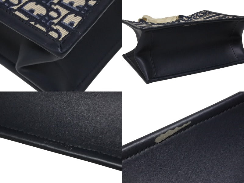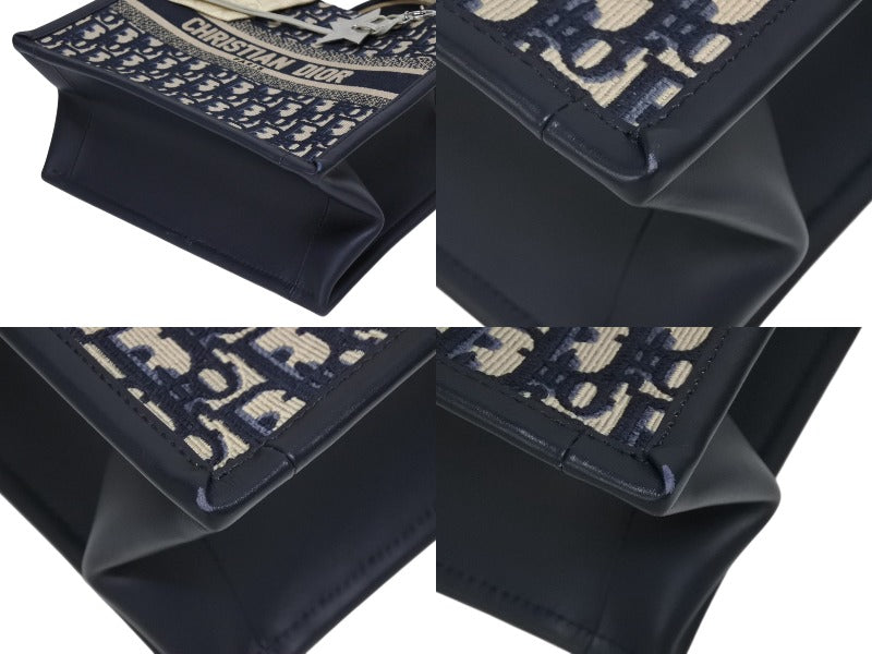 極美品 CHRISTIAN DIOR クリスチャンディオール ブックトート スモール ハンドバッグ M1325CZBB_M928 ネイビー オブリーク柄 中古 4b010153
