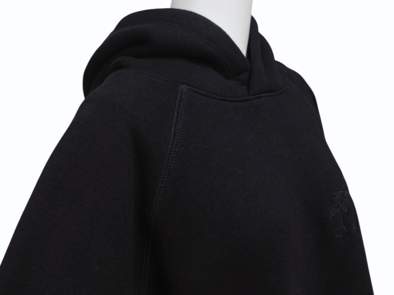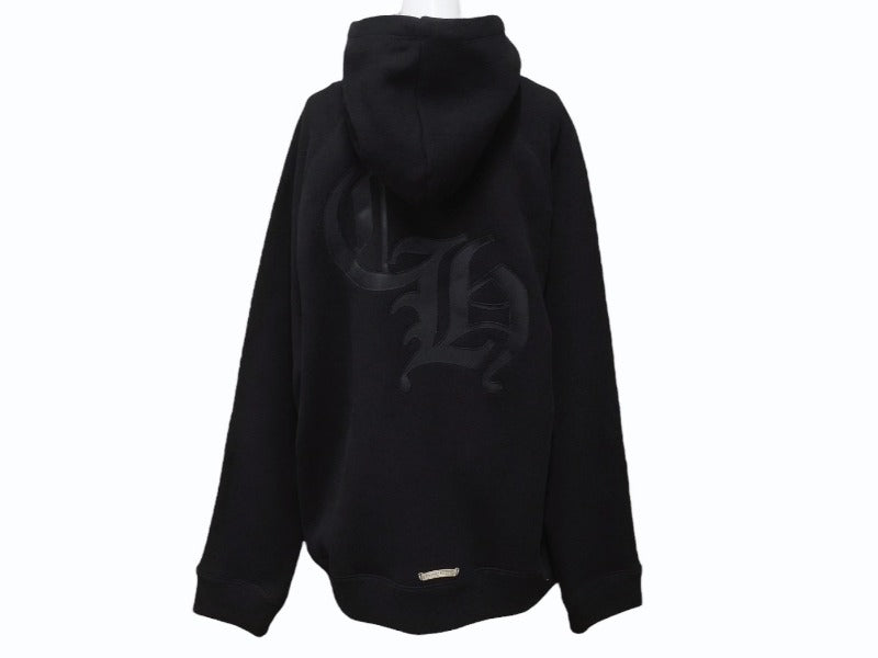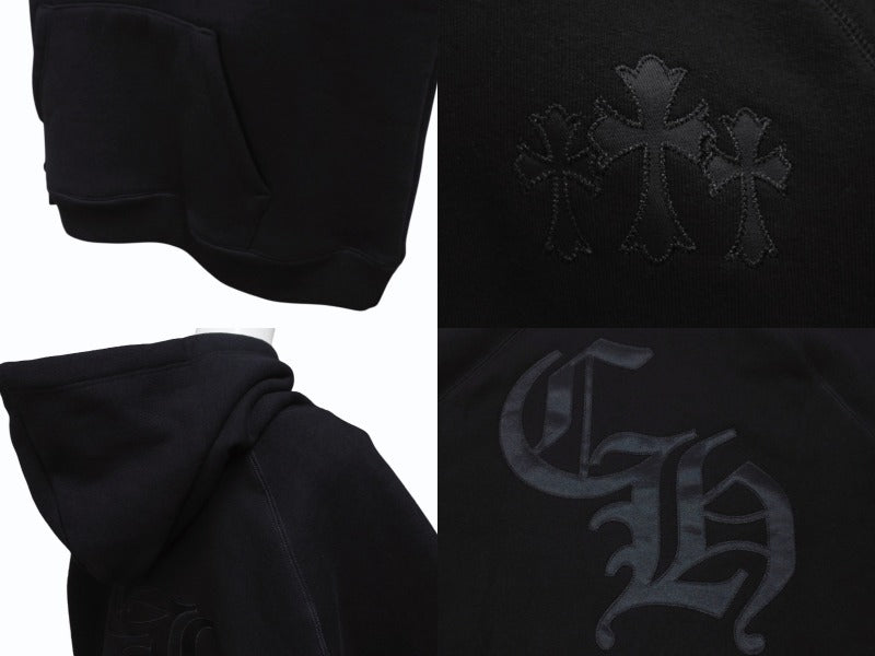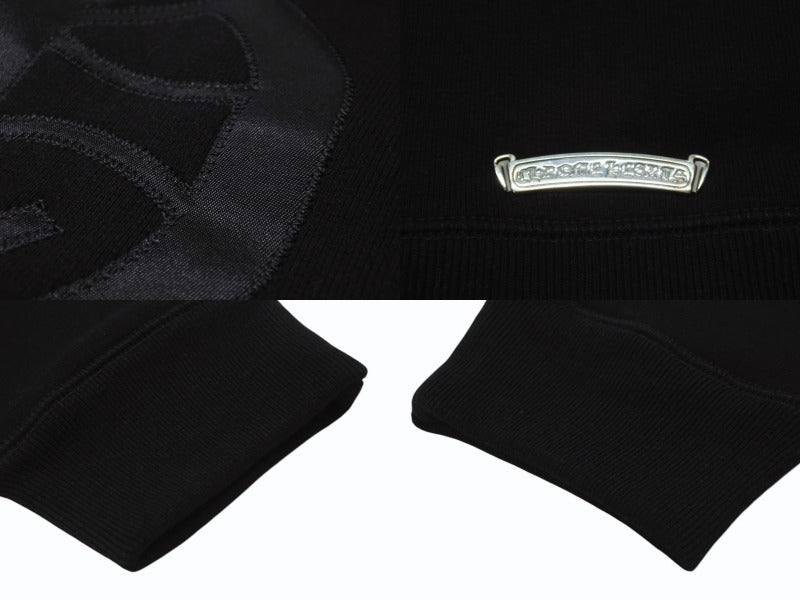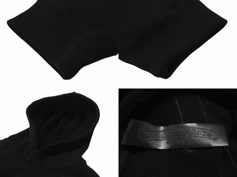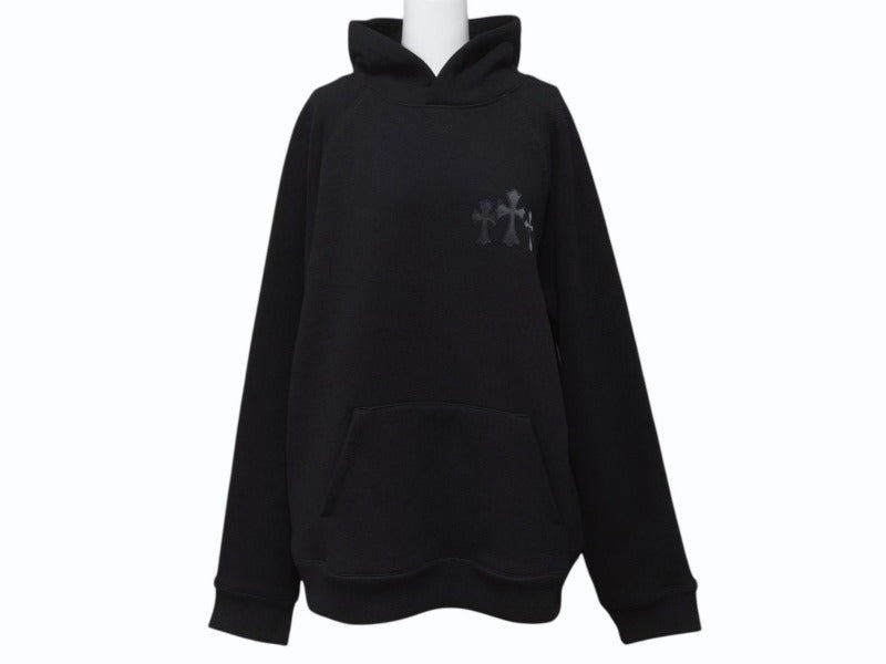 新品同様 CHROME HEARTS クロムハーツ セメタリークロスパッチ ラグランフーディー パーカー サイズL ブラック シルバー925 中古 4b004084