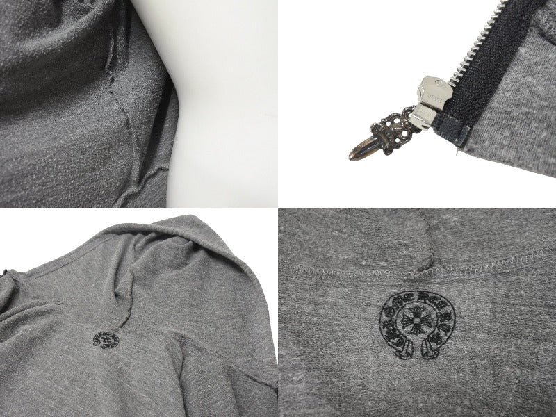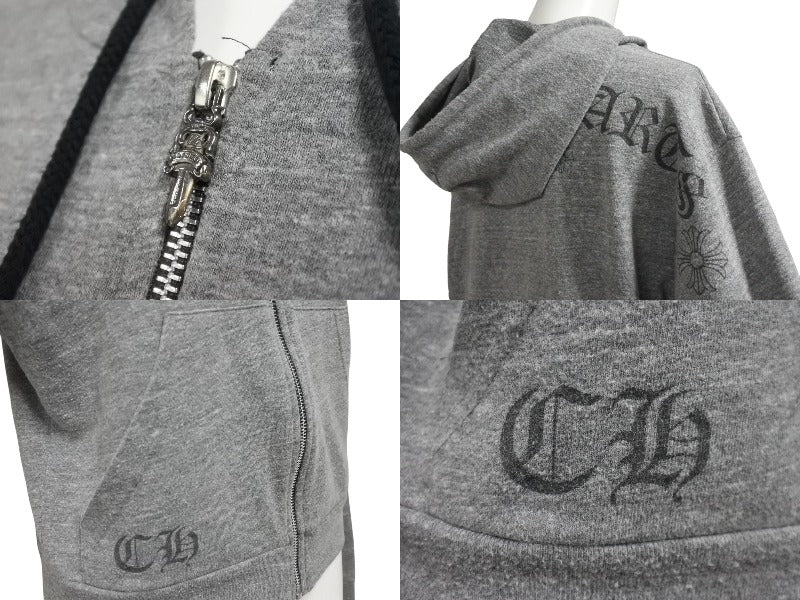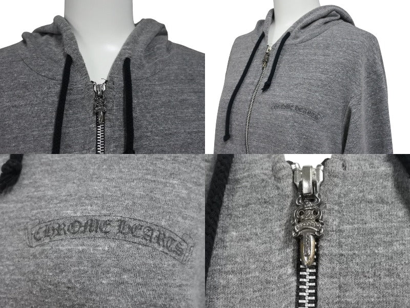 CHROME HEARTS クロムハーツ パーカー バックアーチロゴプリント ダガージップ RN#95024 ポリエステル コットン レーヨン グレー サイズM 美品 中古 4b004745