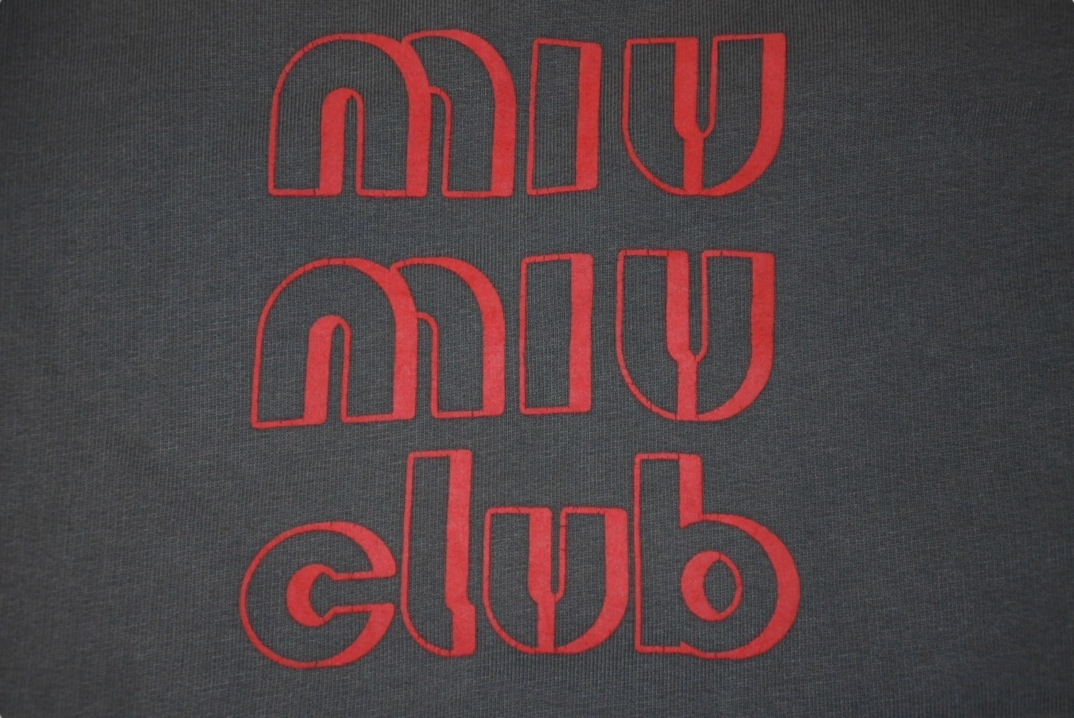 正面にプリントされたmiumiu clubロゴが目を惹くアイテムです。
