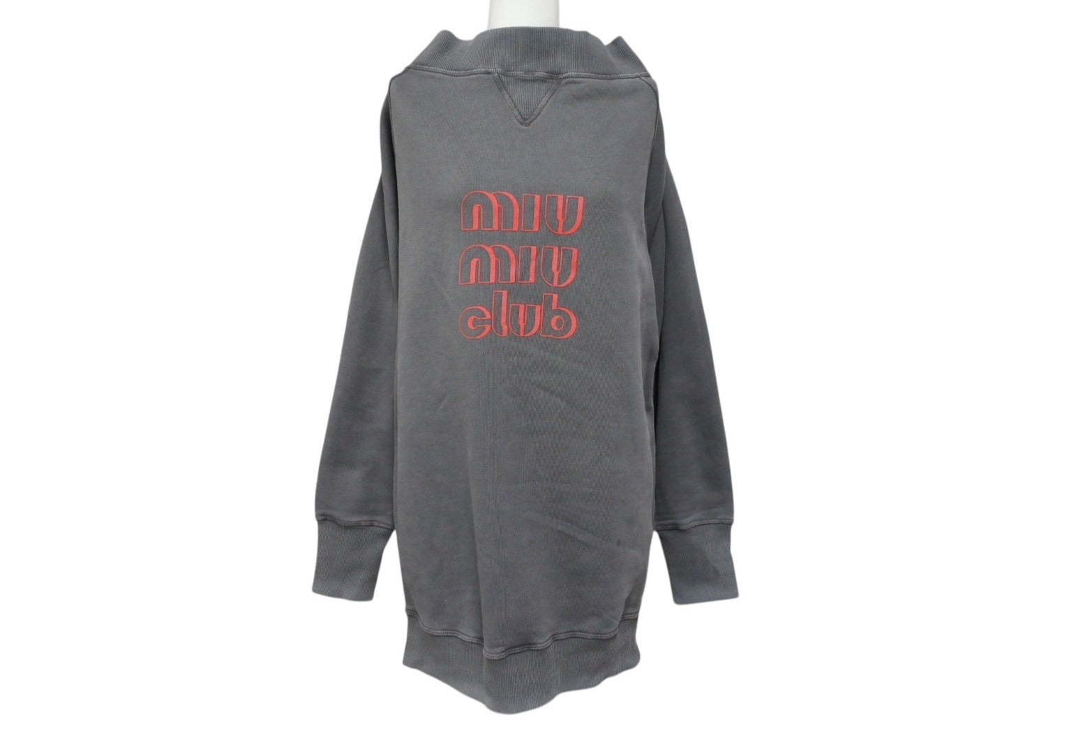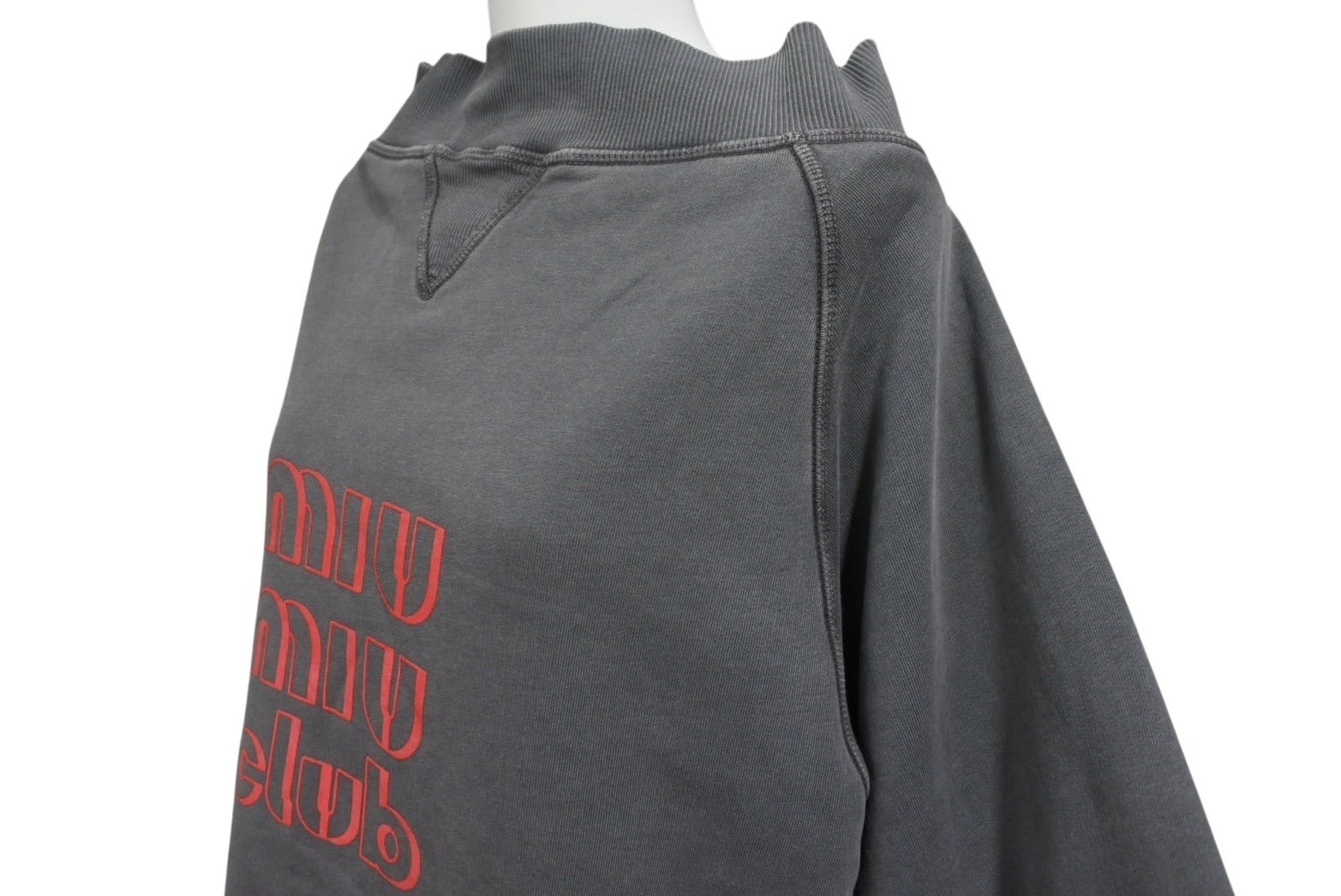 MIU MIU ミュウミュウ 20AW miumiu club コットンスウェットシャツ MJA810 1IG3 チャコールグレー サイズL 美品 中古 4b004770