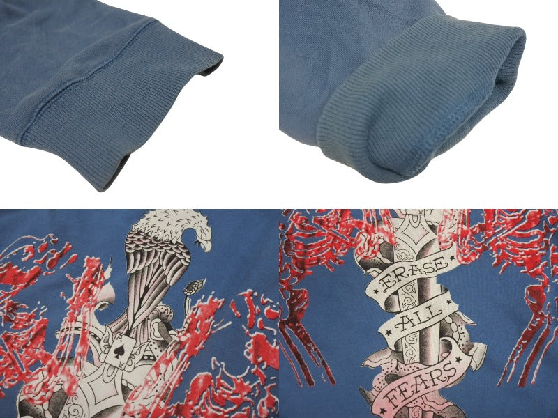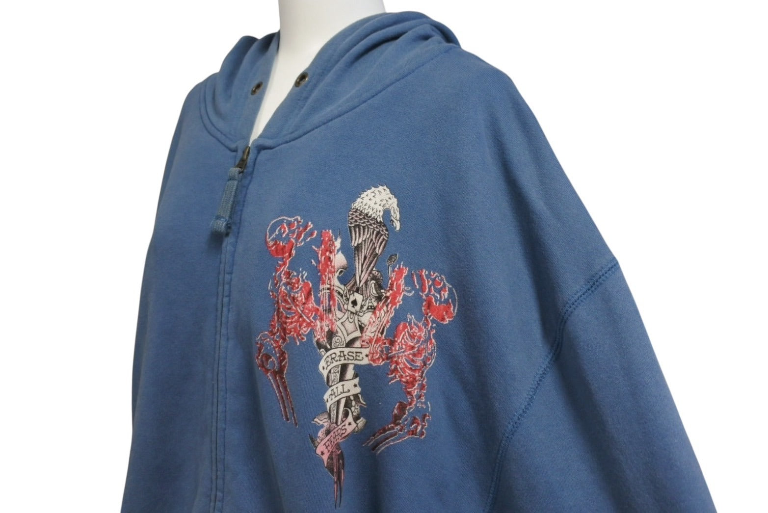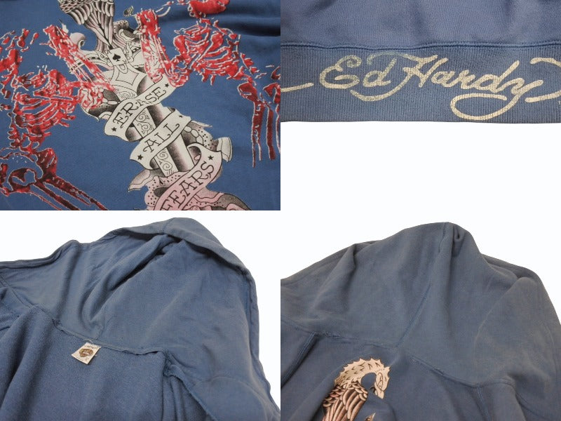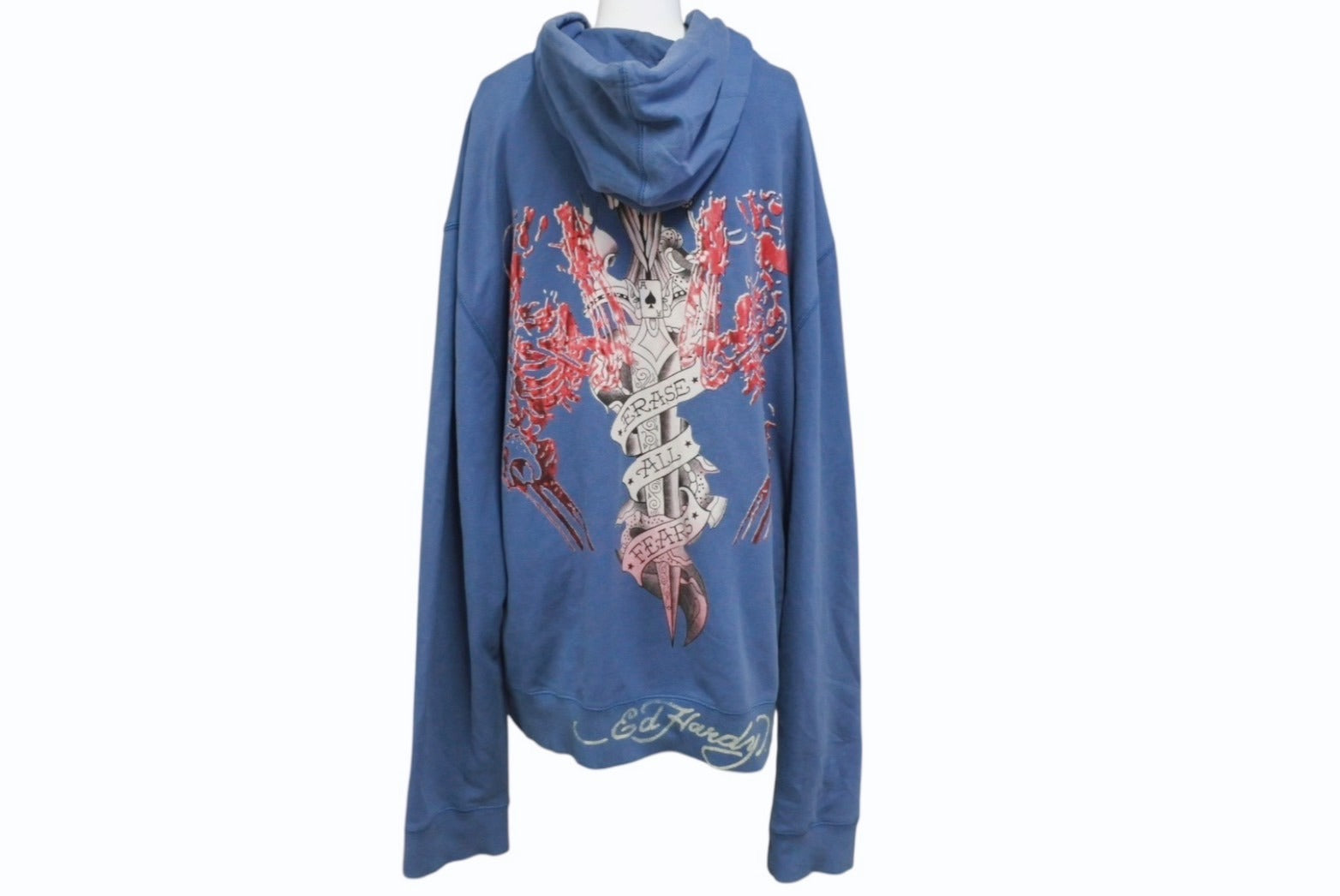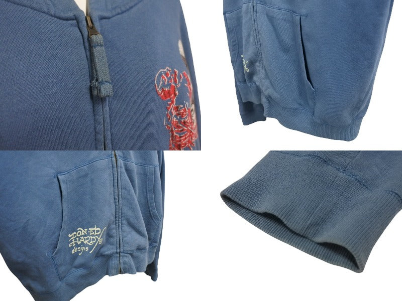 Ed Hardy エドハーディ グラフィックプリント ジップアップパーカー ネイビー ポリエステル サイズXL 美品 中古 4b005080