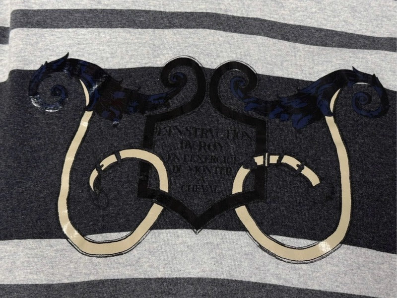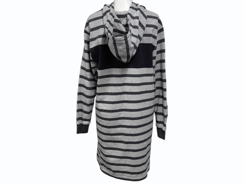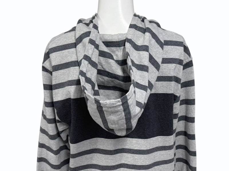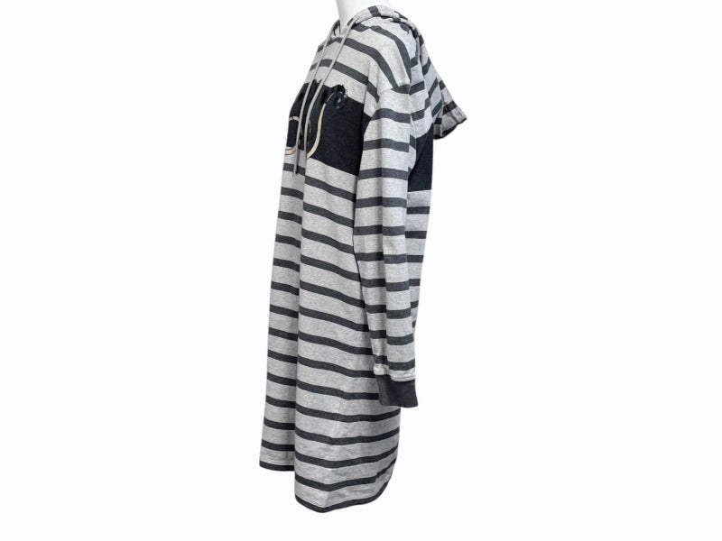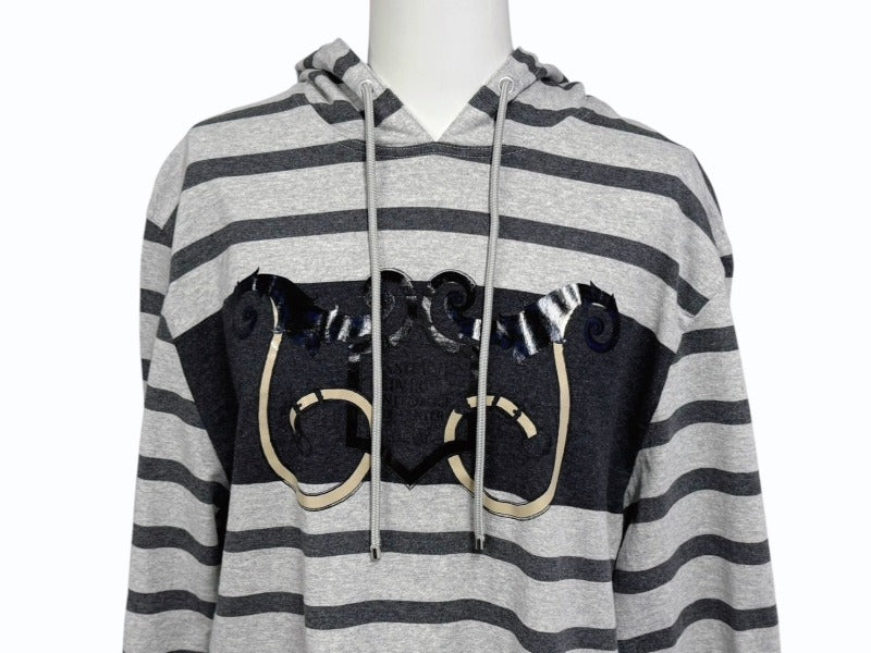 HERMES エルメス プルオーバーフーディー パーカー サイズ34 プリント グレー ボーダー柄 ロング丈 美品 中古 4b005539