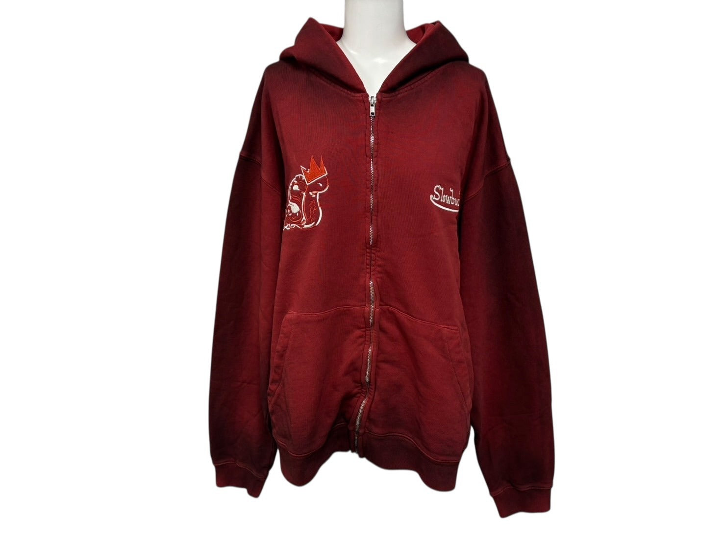 新品未使用 SLOWBUCKS スローバックス ジップアップフーディー パーカー サイズL レッド グラデーション 刺繍 中古 4b009440