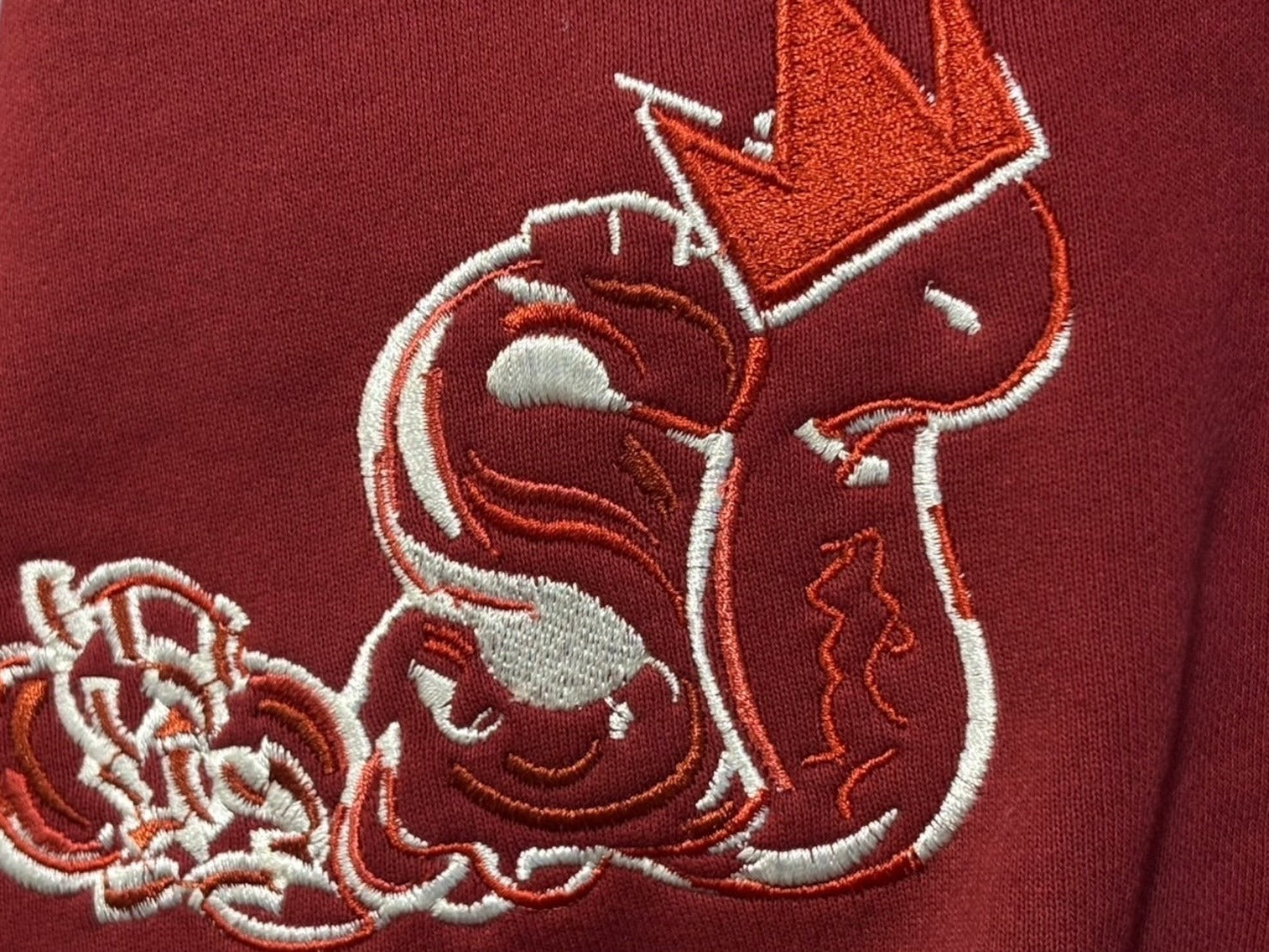 大判な刺繍デザインがインパクトがあり、コーディネートのアクセントになります。
