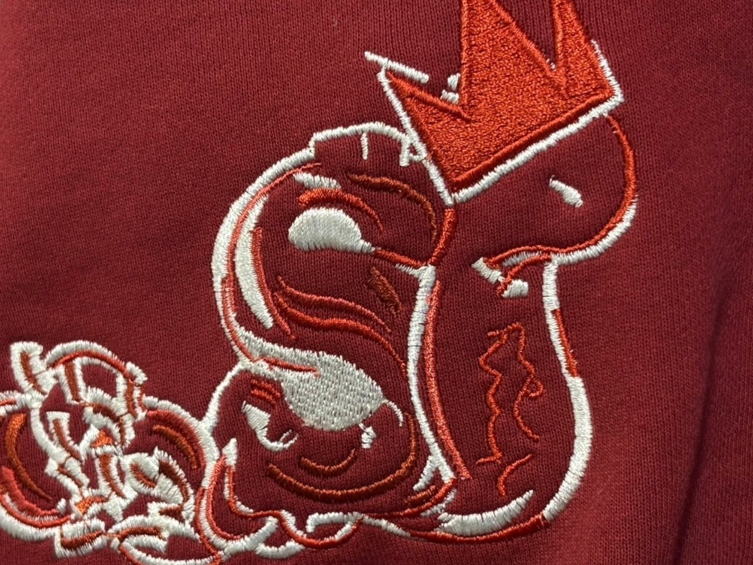 大判な刺繍デザインがインパクトがあり、コーディネートのアクセントになります。