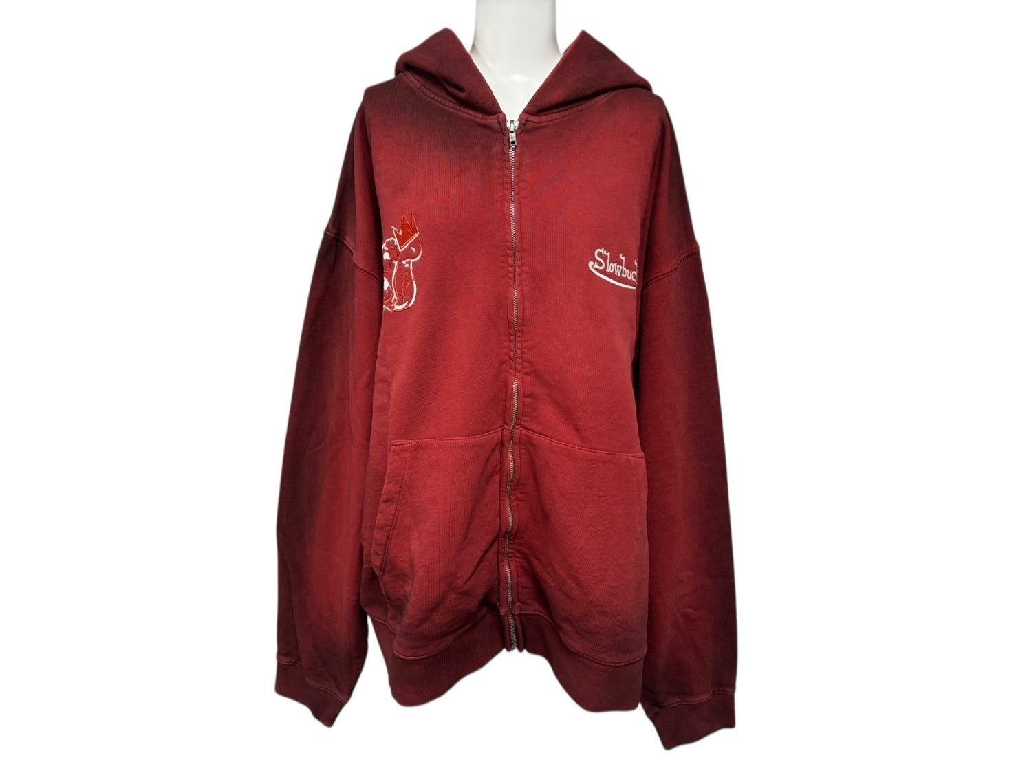 グラデーションカラーが可愛らしいジップアップフーディーになります。