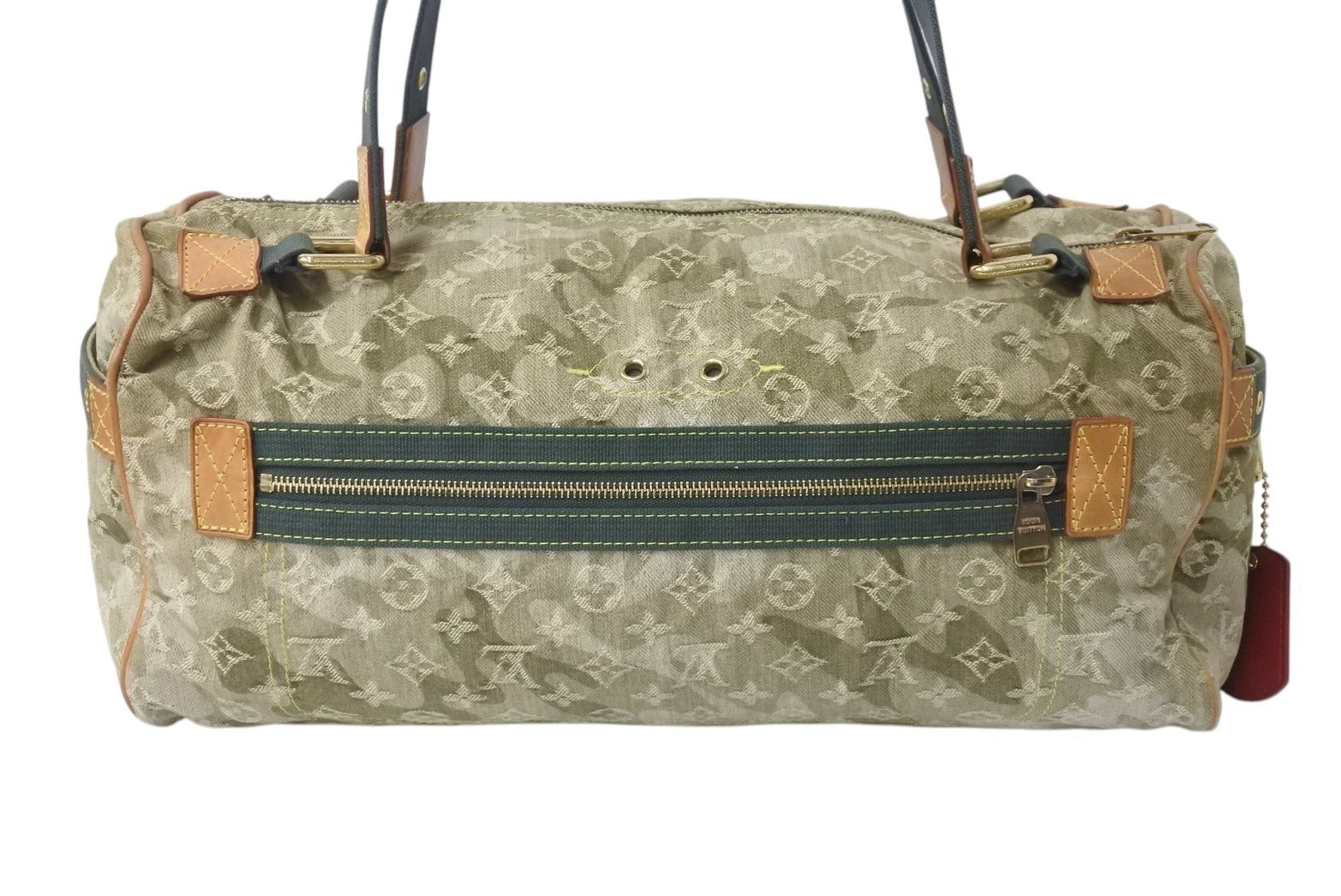 表面パイピングやヌメ革などのレザー部分付近に変色あり。金具部分にスレ、小傷、くすみあり。裏地上部に変色あり。パイピングにスレ、キズ、シミ、ひび割れあります。