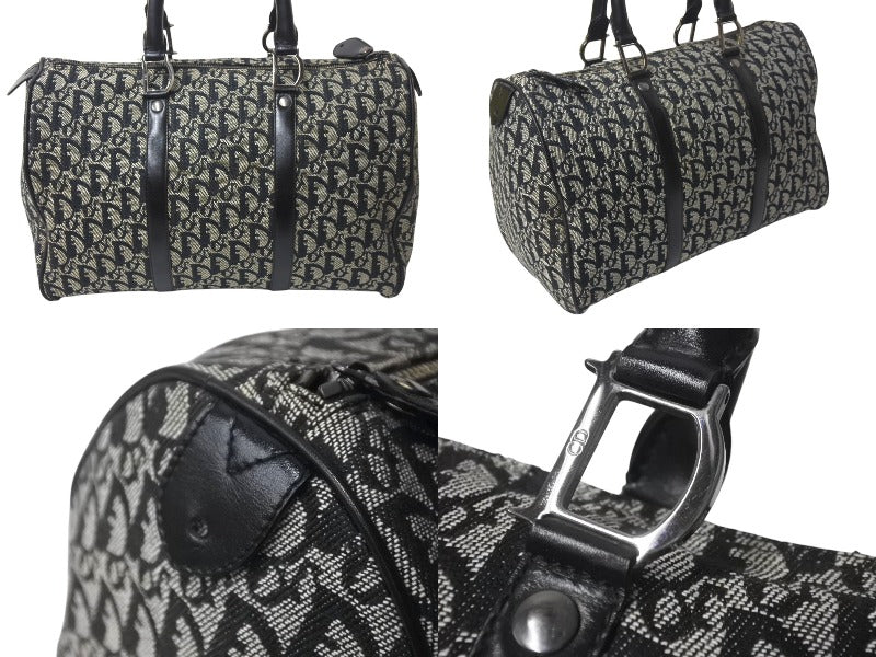 Christian Dior クリスチャンディオール トロッター 35cm ボストンバッグ BO A 0043 ブラック シルバー金具 美品 中古 4b000311