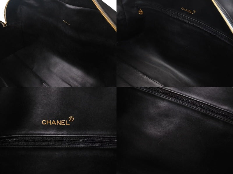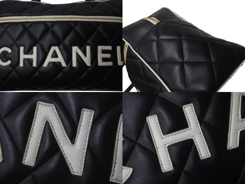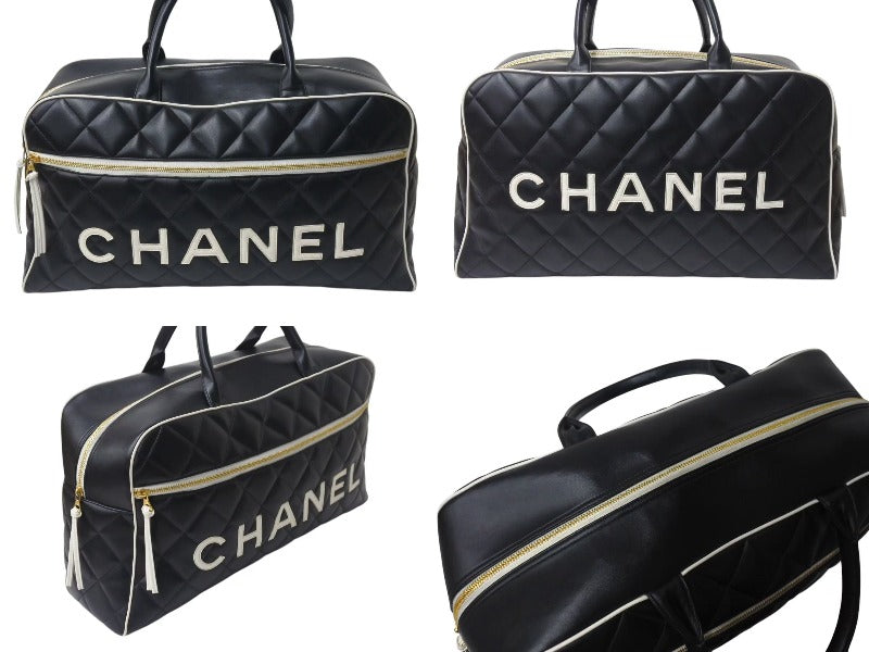 極美品 CHANEL シャネル ボストンバッグ 3番台 キルティング ブラック ロゴ カーフスキン ゴールド金具 中古 4b001142