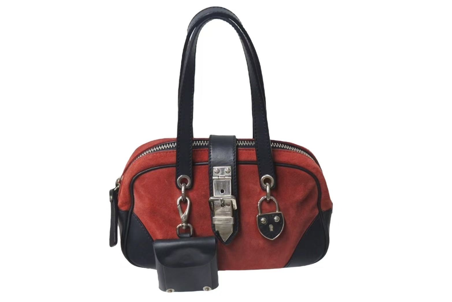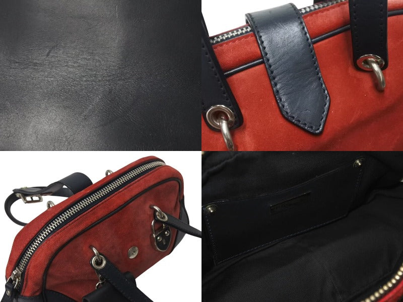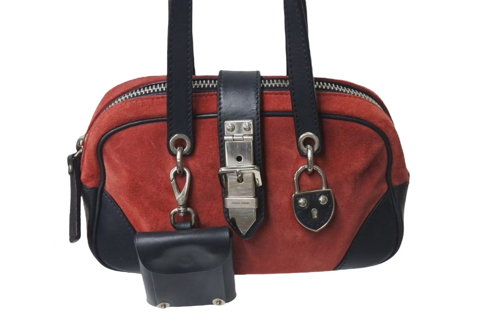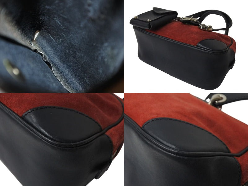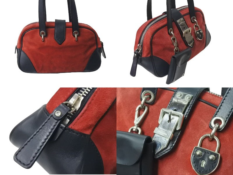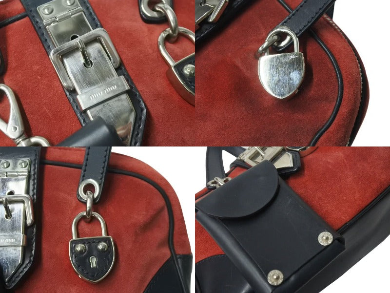 MIU MIU ミュウミュウ ヴィンテージボストンバッグ ハンドバッグ レザー スエード レッド ブラック シルバー金具 美品 中古 4b001611