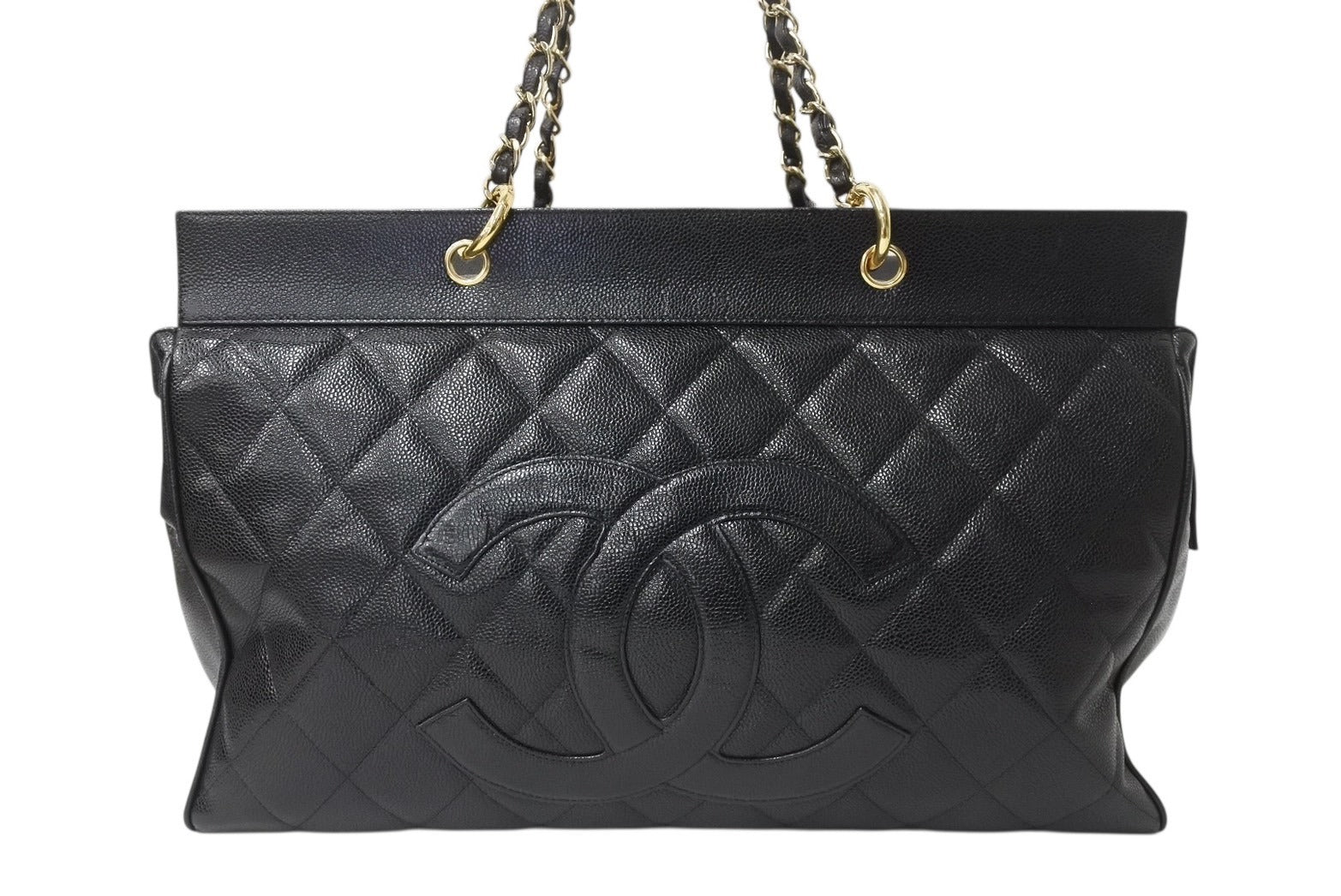 CHANEL シャネル チェーンボストンバッグ 8番台 ココマーク キャビアスキン ブラック イタリア製 ゴールド金具 美品 中古 4b003746