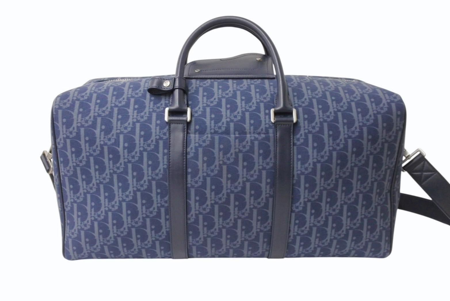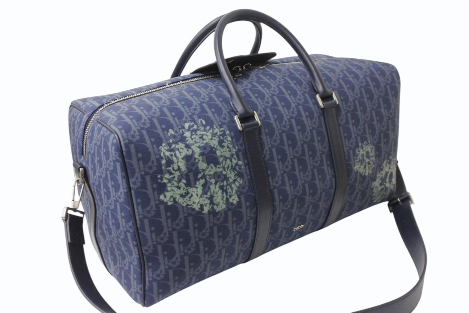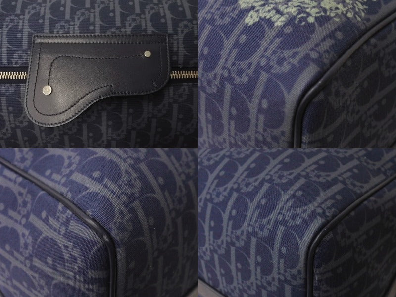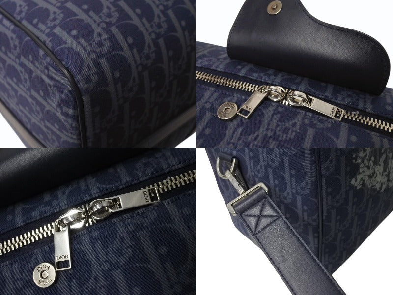 Dior ディオール DENIM TEARS デニムティアーズ ランゴ50 ボストンバッグ 2WAY オブリーク ピースサイン レザー コットンデニム ネイビー シルバー金具 美品 中古 4b004427
