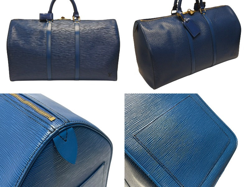 LOUIS VUITTON ルイヴィトン ボストンバッグ キーポル50 M42965 エピレザー ブルー ゴールド金具 美品 中古 4b006054