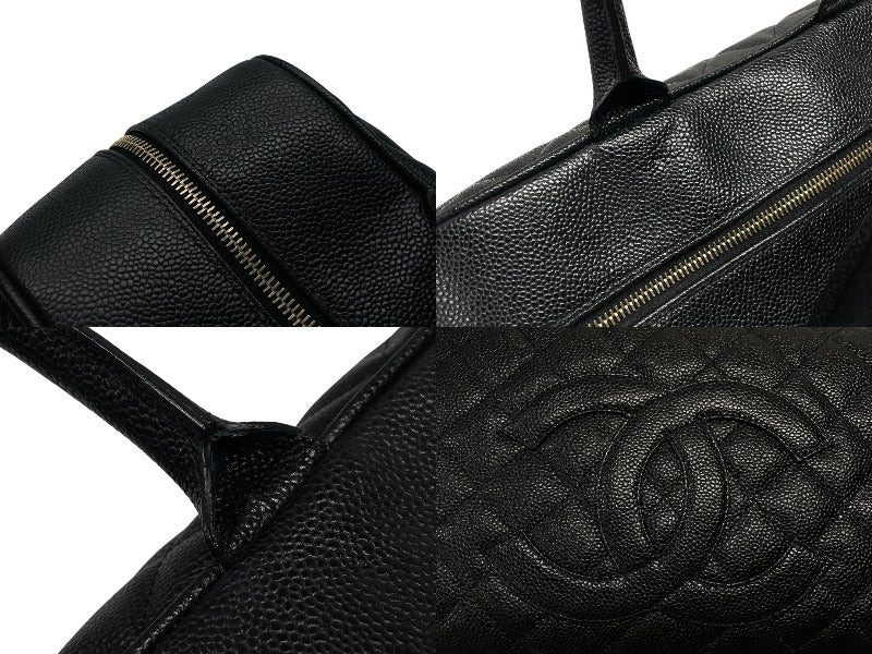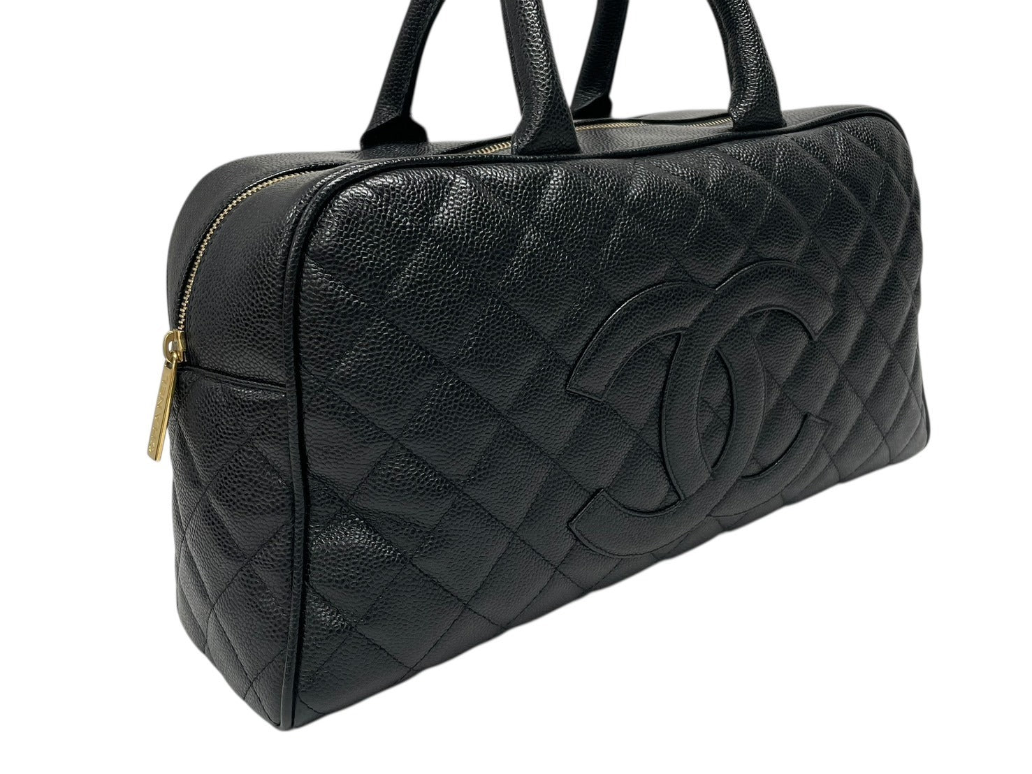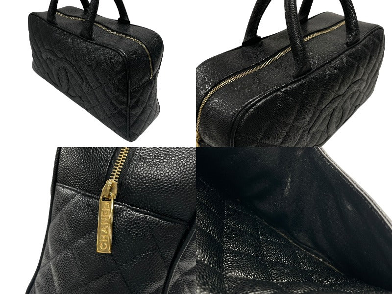 極美品 CHANEL シャネル ボストンバッグ ボーリングボストンバック キャビアスキン 8番台 ブラック ゴールド金具 中古 4b009130