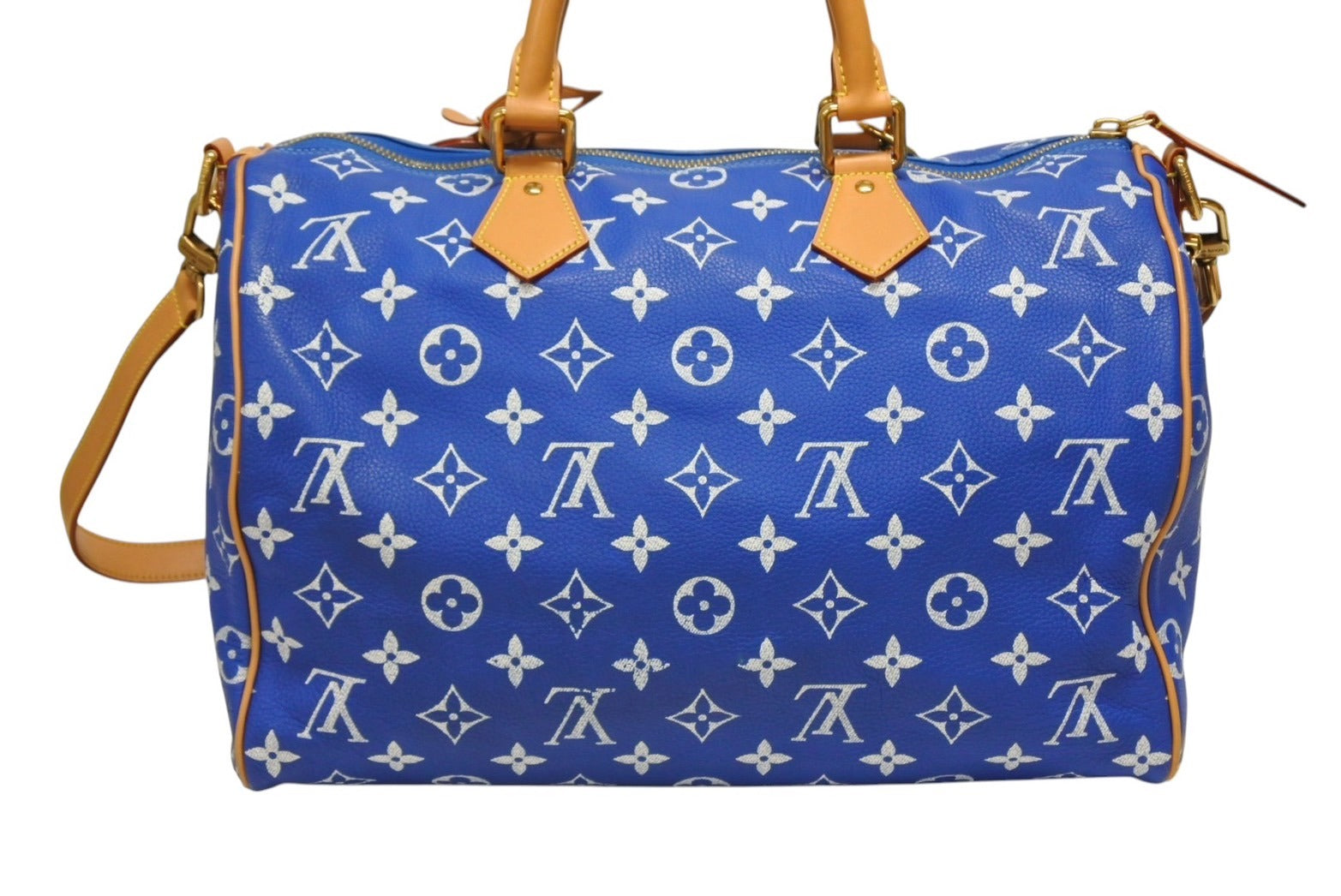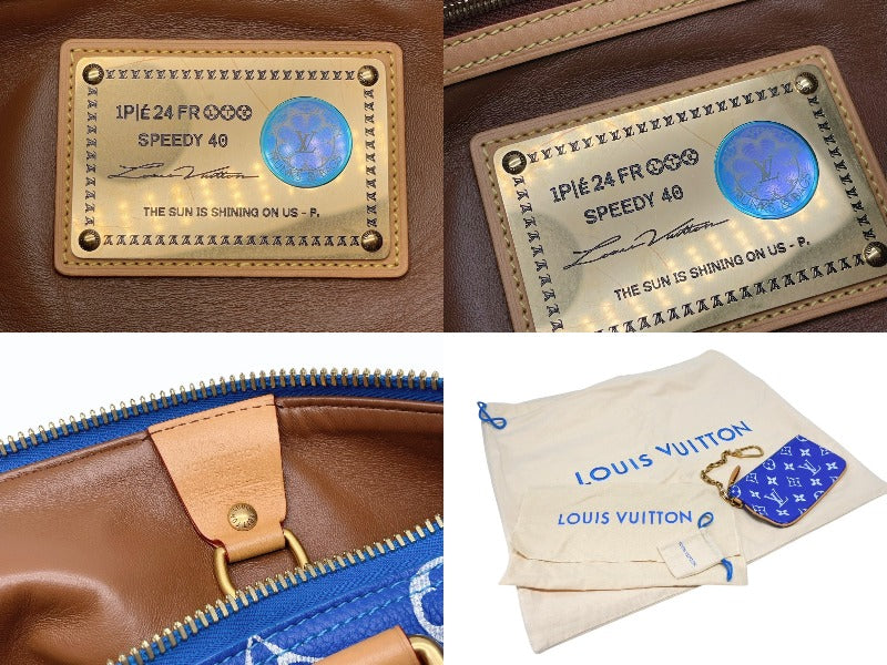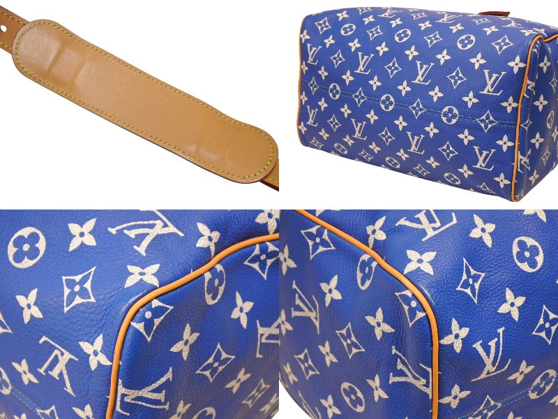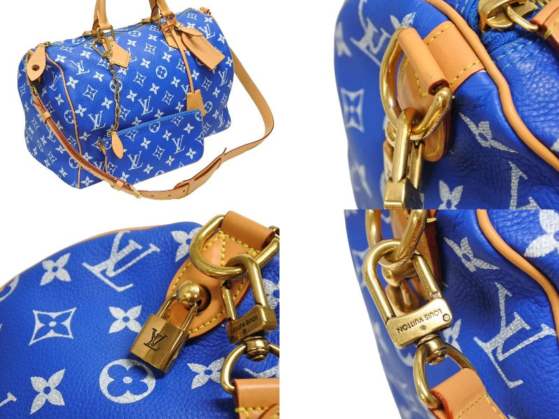 新品同様 LOUIS VUITTON ルイヴィトン スピーディ P9 バンドリエール40 M24418 2WAY ボストンバッグ ブルー ゴールド金具 中古 4b009210