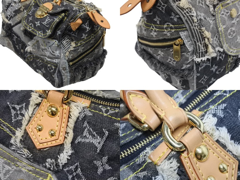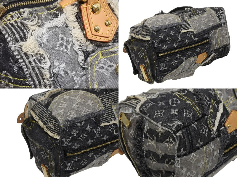 極美品 LOUIS VUITTON ルイヴィトン スピーディ30 ボストンバッグ パッチワーク M95381 モノグラムデニム ブラック 中古 4b009975