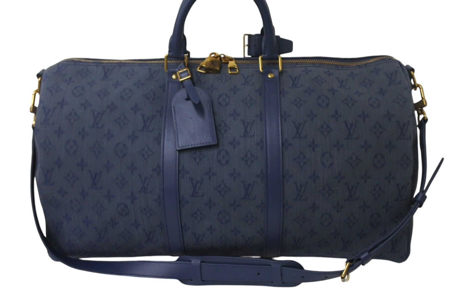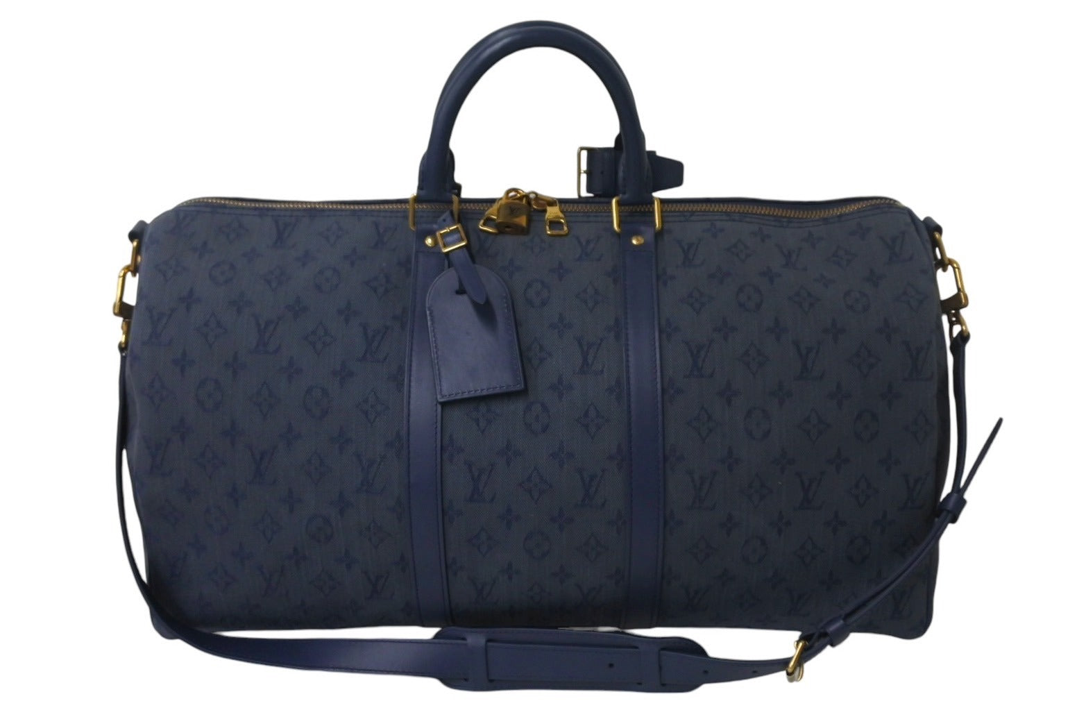 LOUIS VUITTON ルイヴィトン キーポル バンドリエール50 ボストンバッグ M44645 モノグラムデニム レザー ネイビー 美品 中古 4c069106