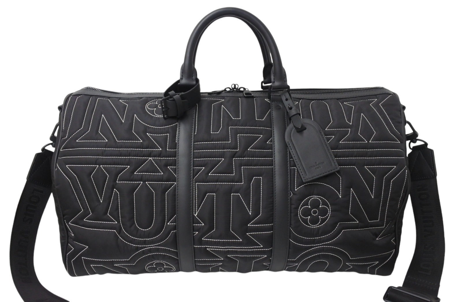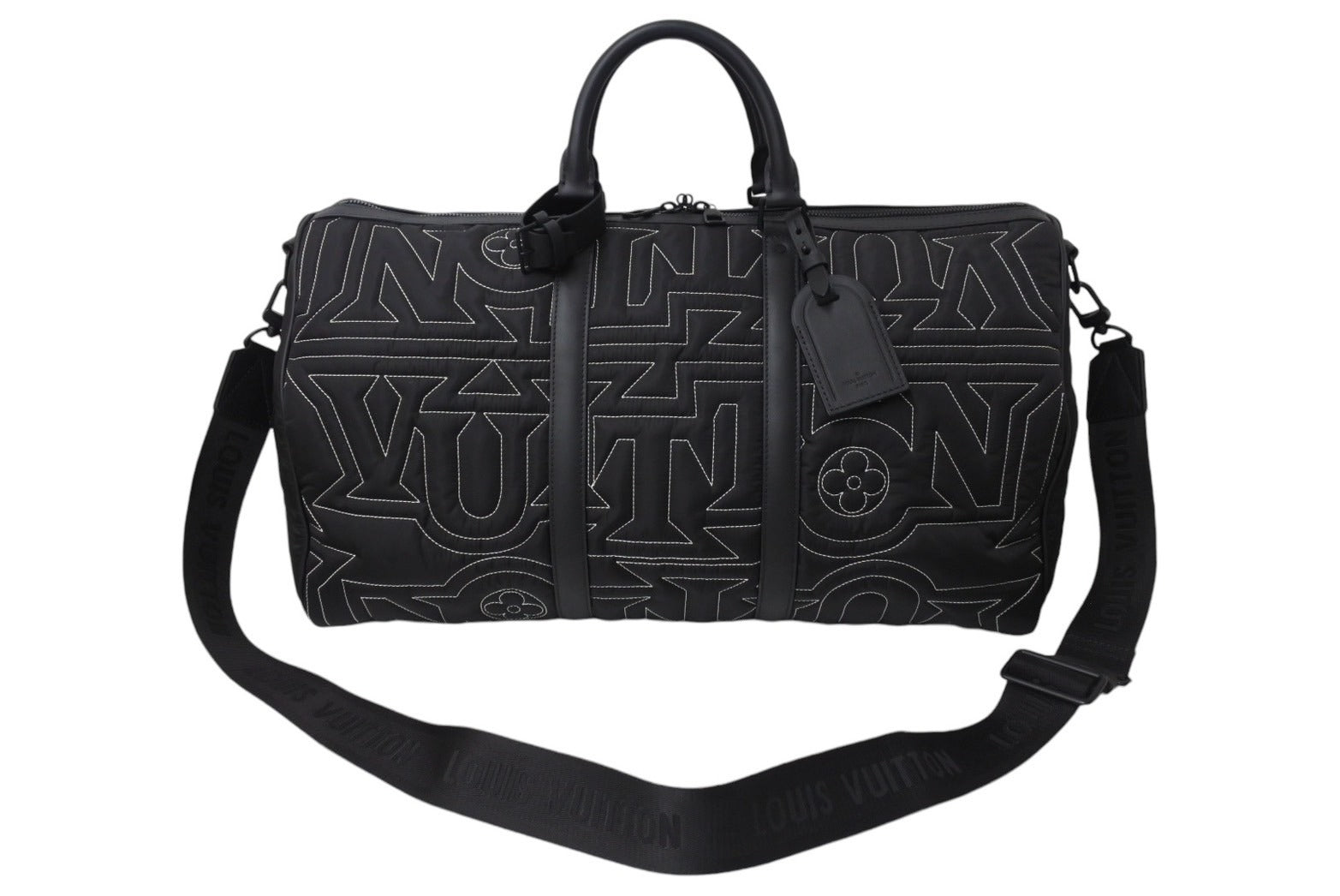 2022冬の「スノー」カプセル・コレクションで視線を集めた、定番アイテムをスポーティにアップデートした「キーポル・バンドリエール 50」。ブラックのリサイクルナイロンに「Vuitton」シグネチャーをあしらい、冬のプレタポルテ・コレクションと同様のモノグラム・フラワー モチーフでアクセントを効かせました。ダブルハンドルと調節可能なストラップ付き。スキーバカンスに最適な、この上なく実用的なトラベルバッグです。