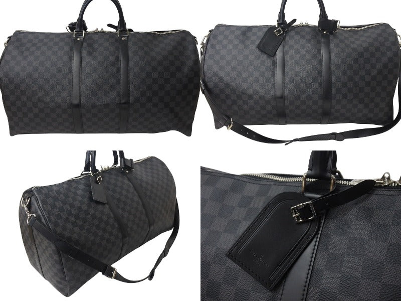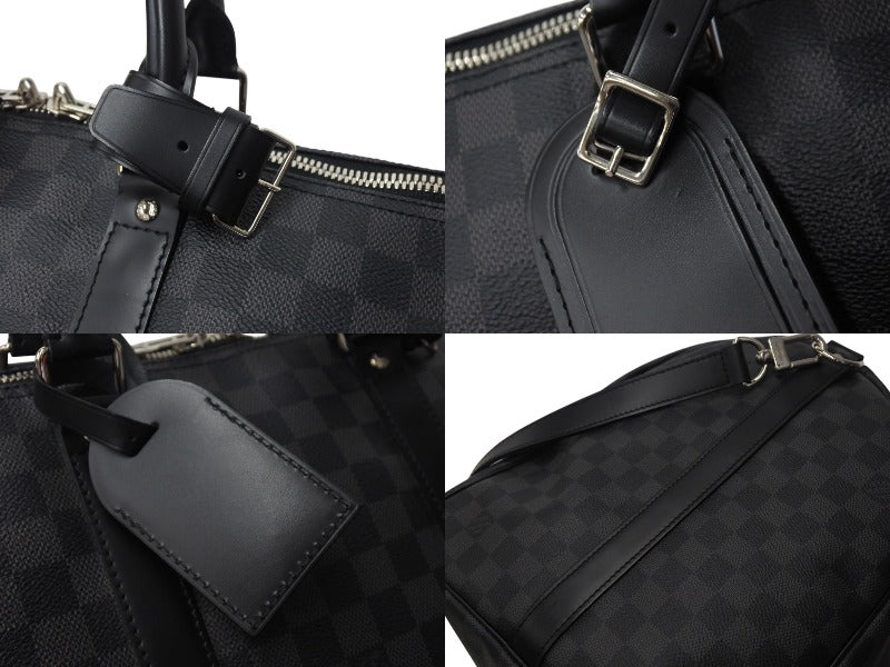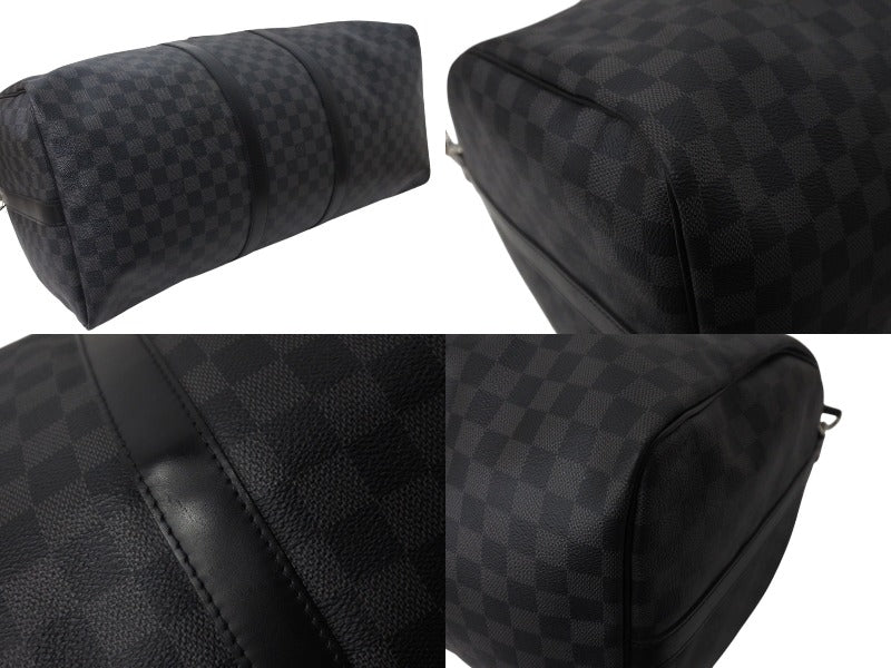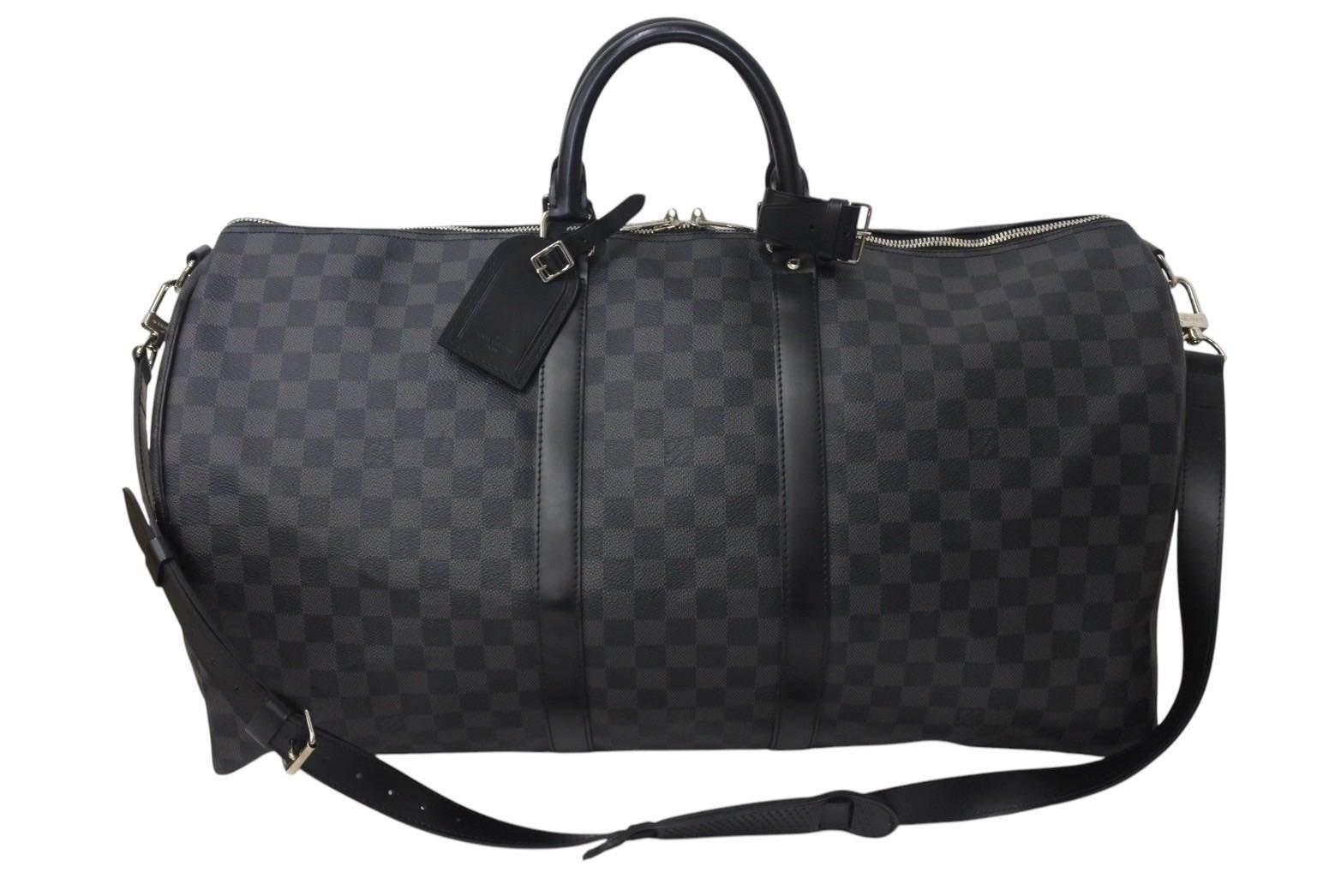 シンプルで都会的なデザインが魅力の「ダミエ・グラフィット」のソフトタイプのトラベルバッグ。肩に掛けて快適に持ち運べるレザーストラップ付き。長期旅行でも安心のサイズ。