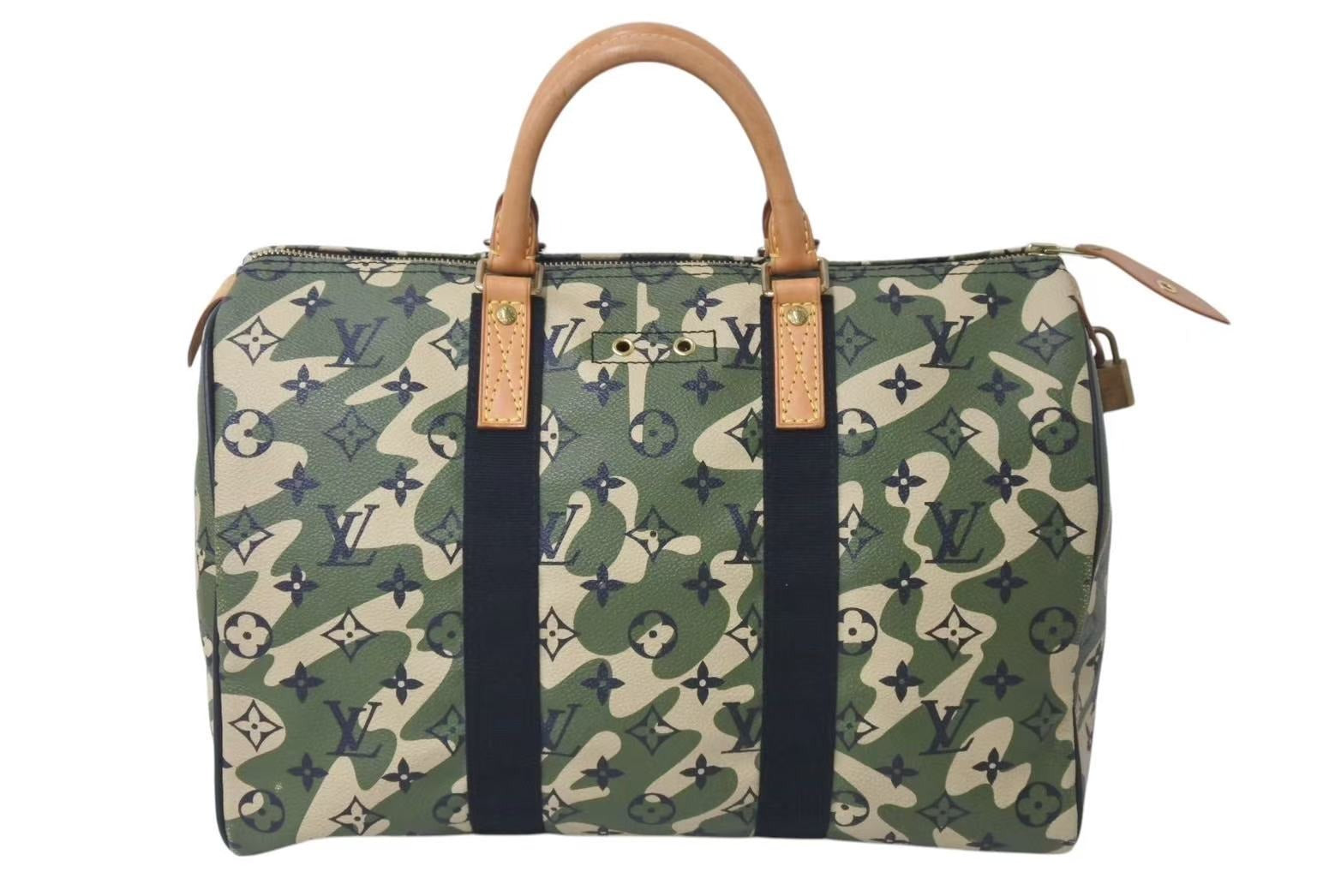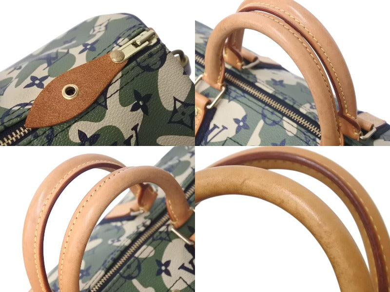 極美品 ルイ ヴィトン LOUIS VUITTON モノグラム フラージュ スピーディ 35 バッグ カモフラ グリーン M95773 村上隆 中古 4c072698