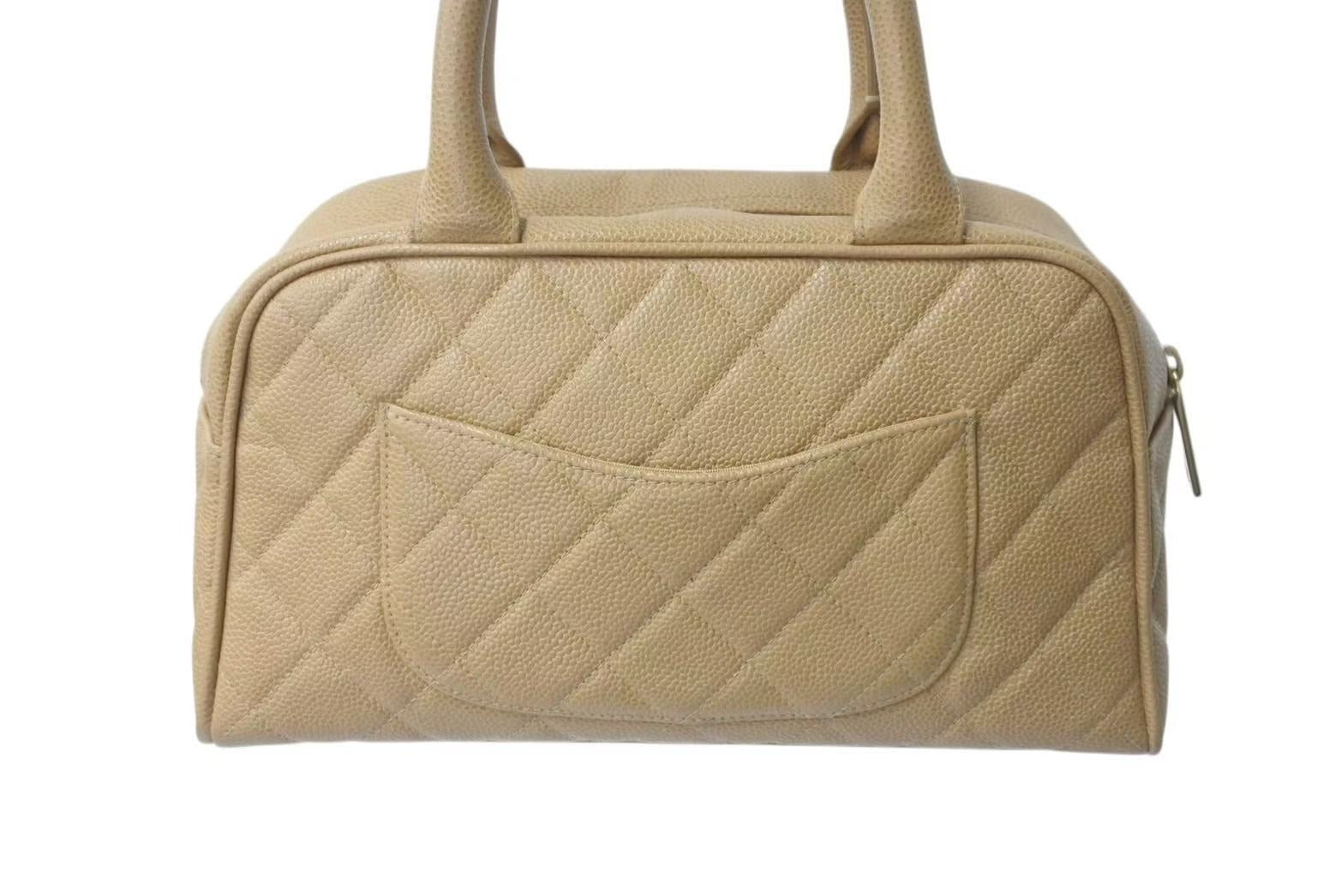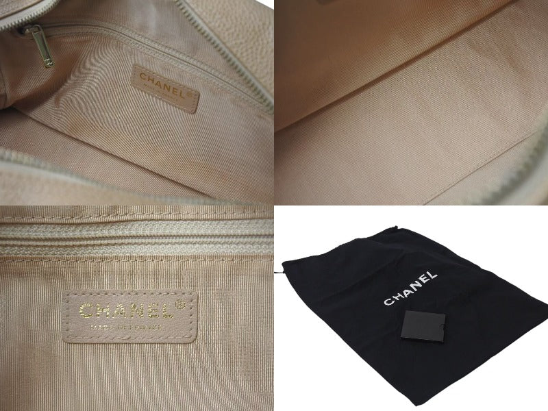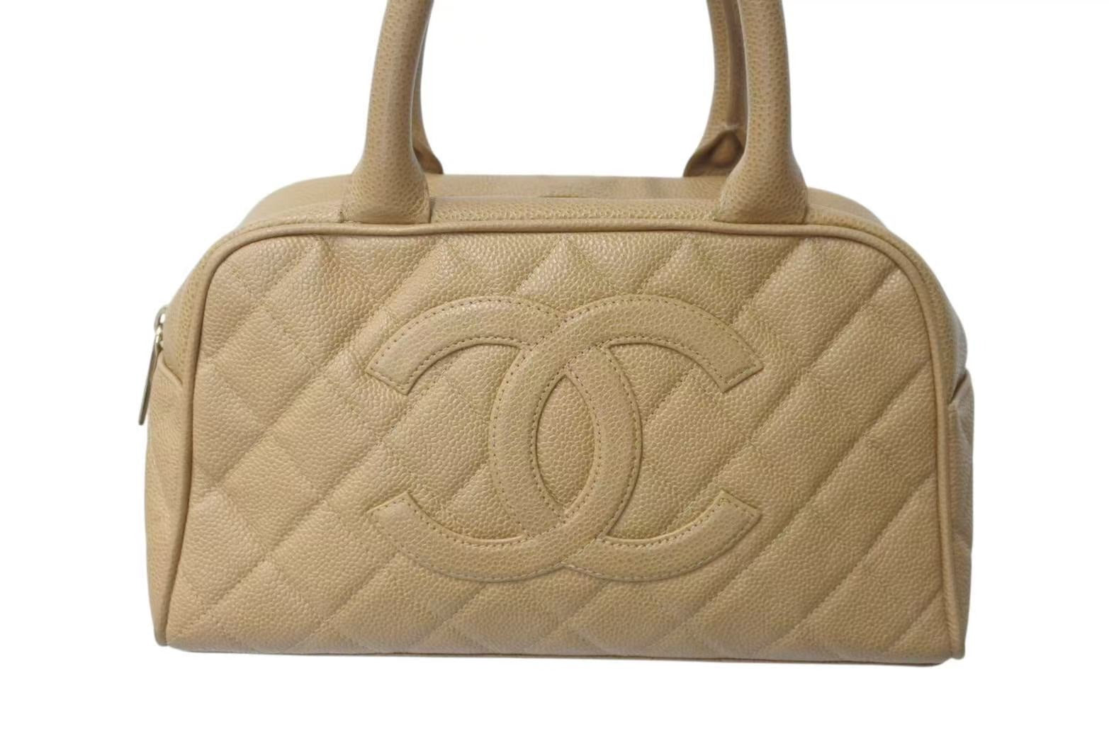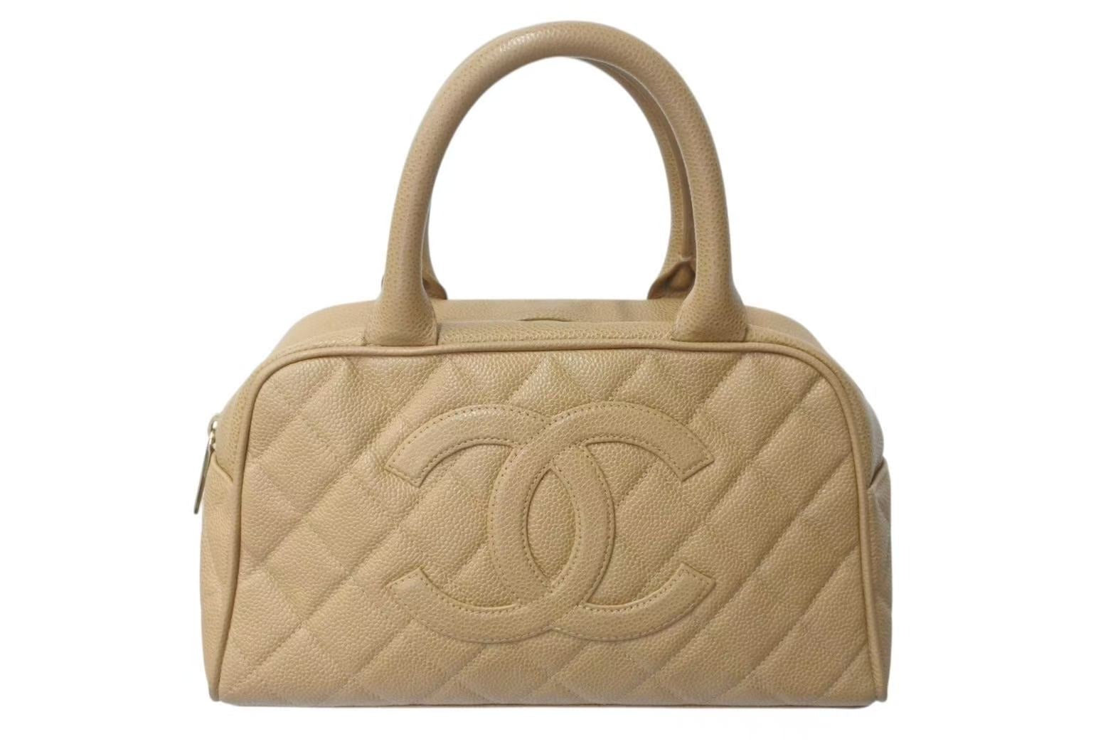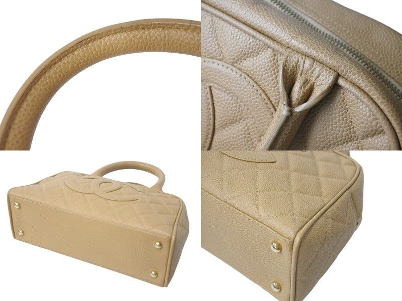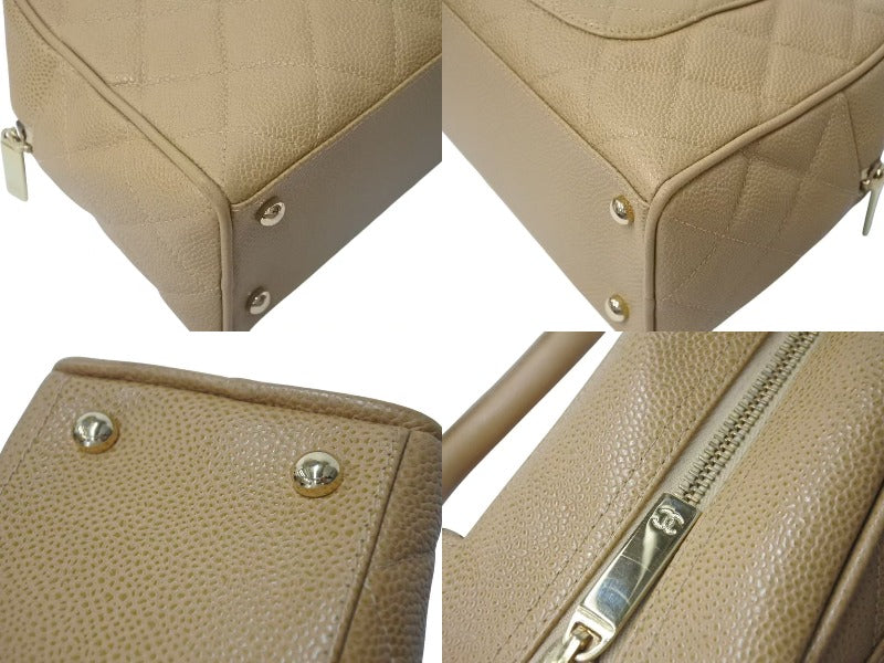 CHANEL シャネル マトラッセ ハンドバッグ ココマーク フランス製 キャビアスキン ベージュ ゴールド金具 美品 中古 4c073484