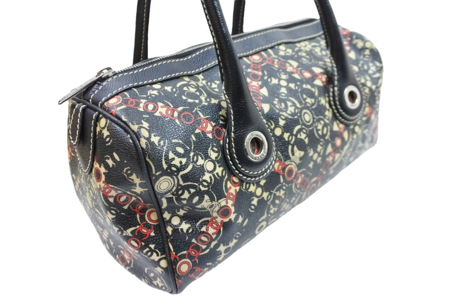 CHANEL シャネル ミニボストンバッグ ココトラベル 11番台 2007限定 PVC ブラック レッド ベージュ シルバー 美品 中古 52152