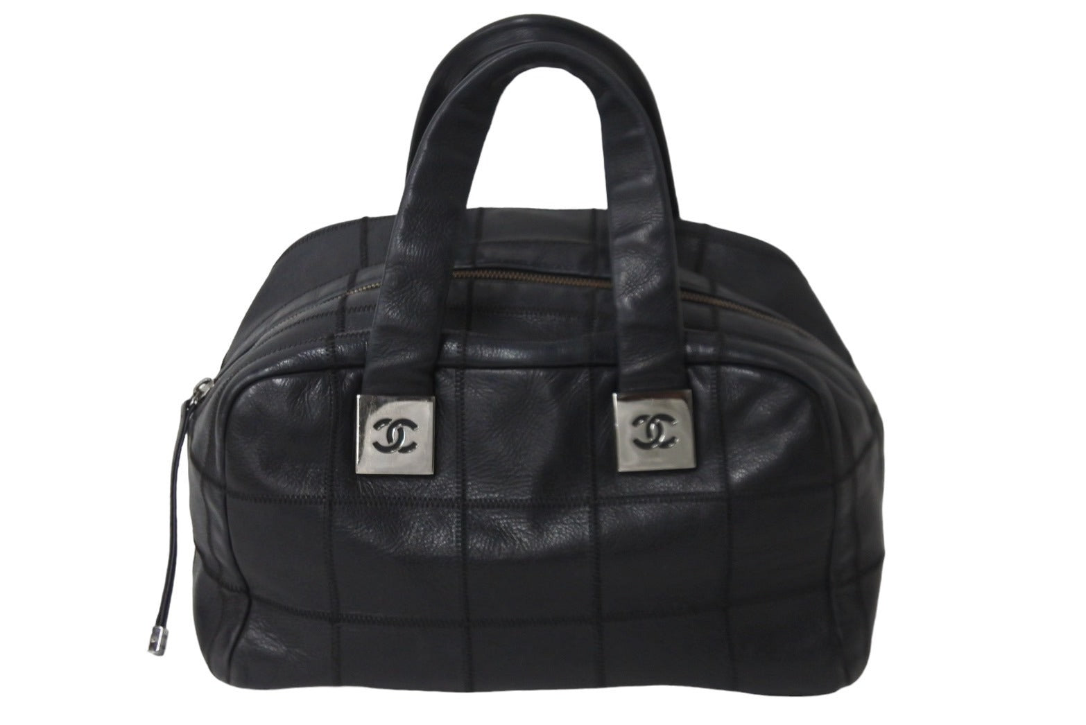 CHANEL シャネル チョコバー ハンドバッグ ミニボストンバッグ 8番台 A24184 ラムスキン ブラック シルバー 美品 中古 54400