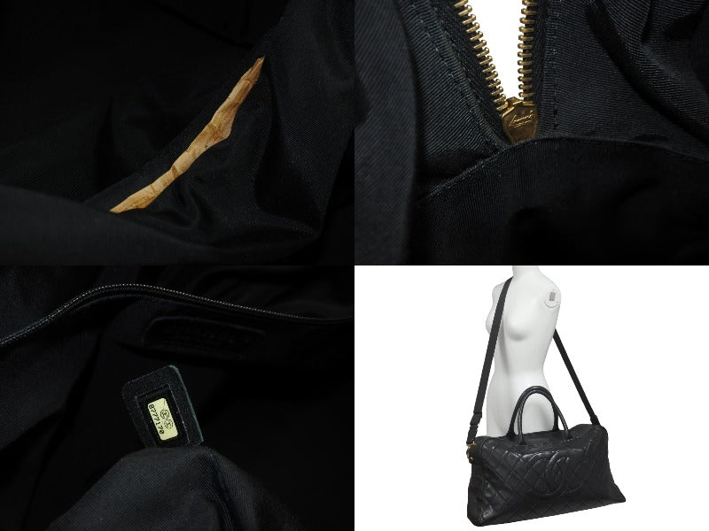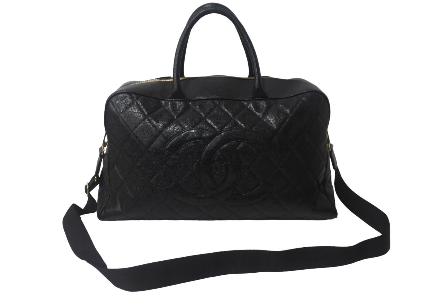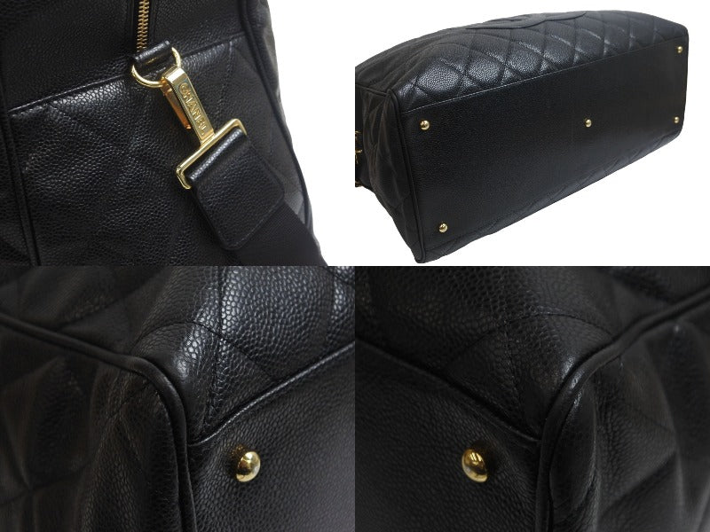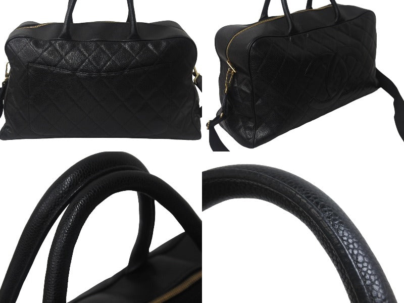 CHANEL シャネル ヴィンテージ ボストンバッグ キャビアスキン 旅行カバン 8番台 ブラック ゴールド金具 美品 中古 55040