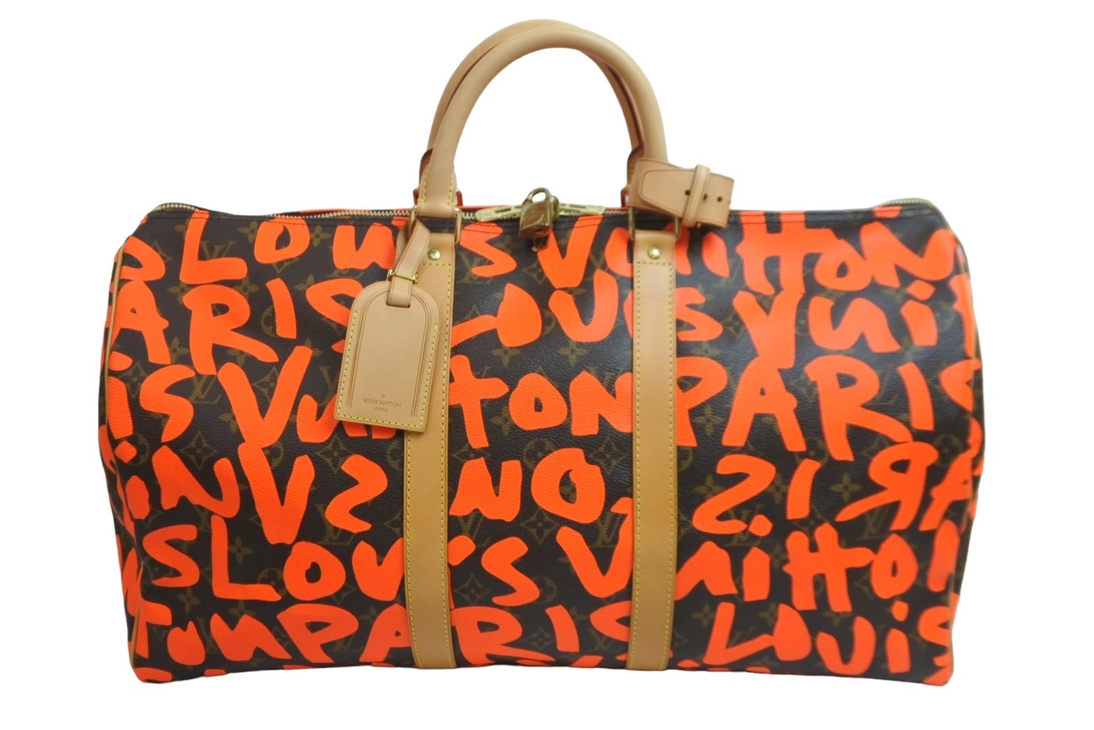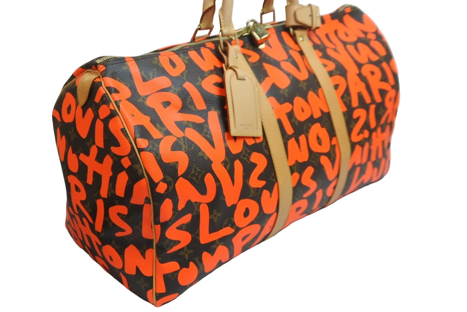 新品同様 LOUIS VUITTON ルイ・ヴィトン モノグラム グラフィティ キーポル50 ボストン スプラウス オレンジ M93699 中古 56379