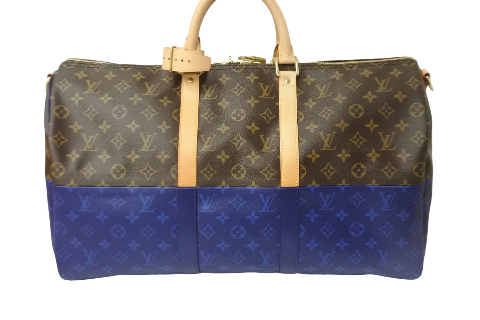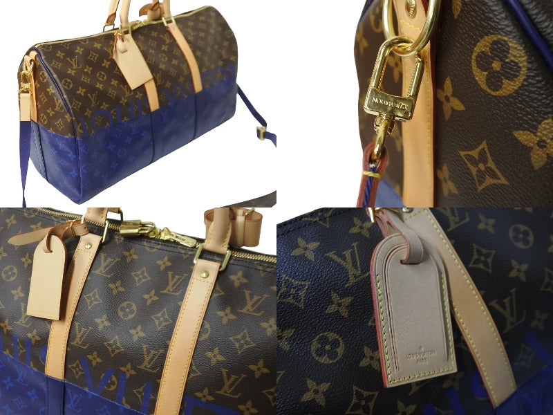 極美品 LOUIS VUITTON ルイヴィトン M43861 キーポル50 モノグラムスプリット 2018 キムジョーンズ期 ブラウン ブルー 中古 57006