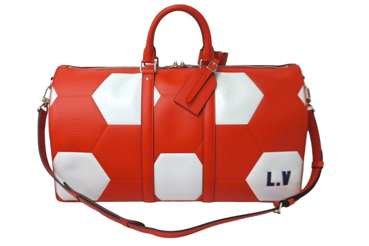 サッカーボールを想起させるデザインに、「L.V」のロゴが特徴のキーポルバンドリエール50。サッカーファンの心を鷲掴みにするアイテムです。