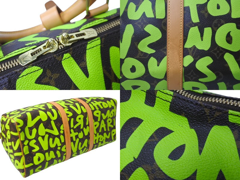 LOUIS VUITTON ルイ ヴィトン キーポル50 モノグラム グラフィティ スティーブン スプラウス M93700 グリーン 美品 中古 64130