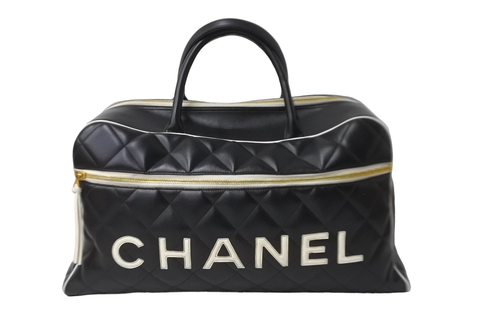 極美品 CHANEL シャネル スポーツ ロゴマトラッセ ボストンバッグ ブラック ホワイト 3番台 ロゴ ゴールド金具 中古 64178