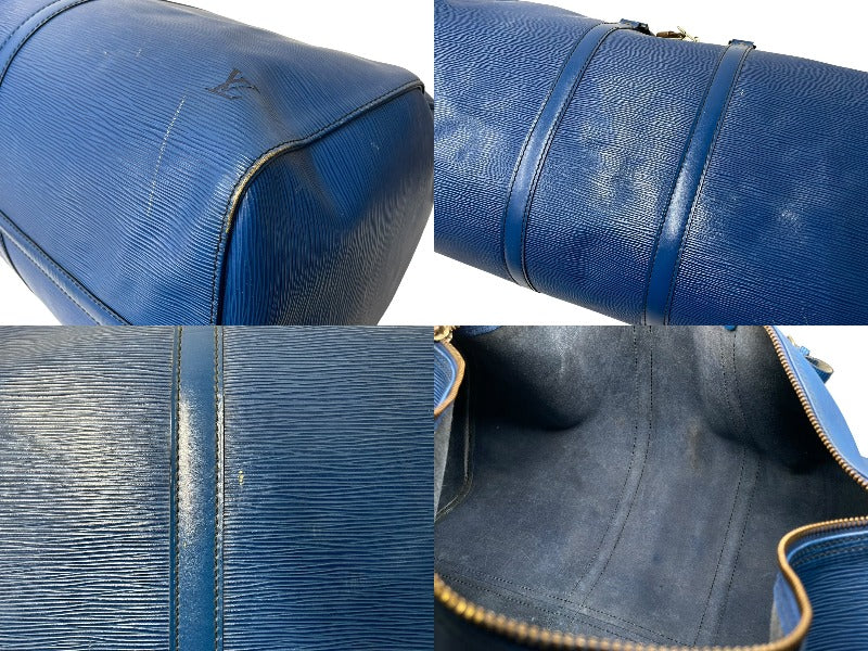 両面、マチ、側面、ハンドル、内側、角にスレあり。ファスナー、ハンドル金具剥げと小傷あり。内側シミと汚れあり。