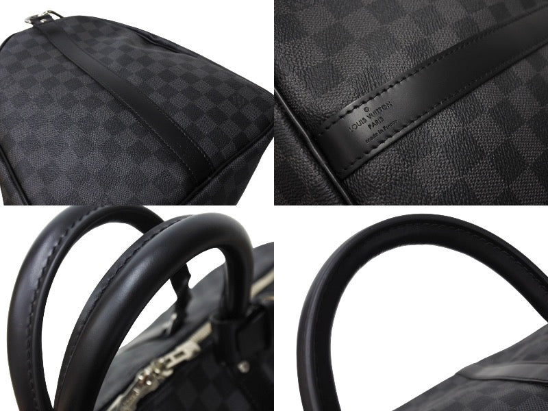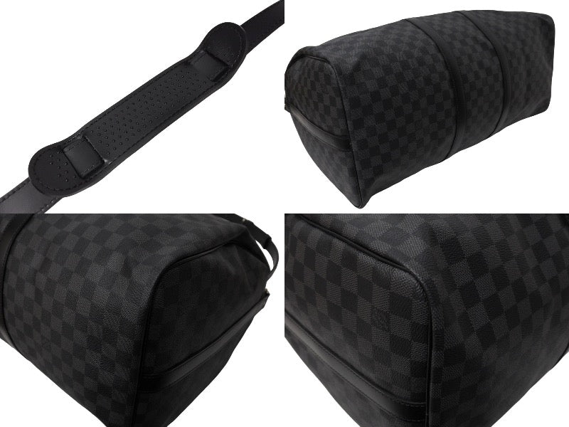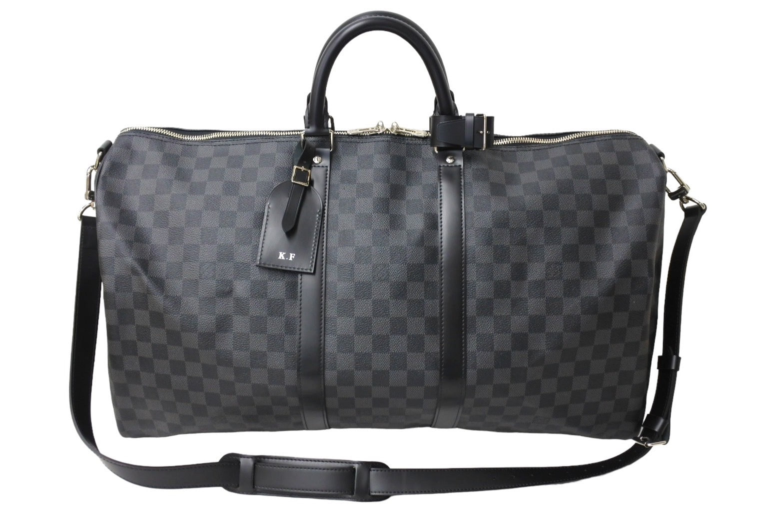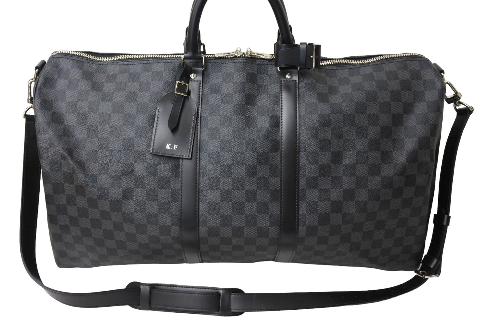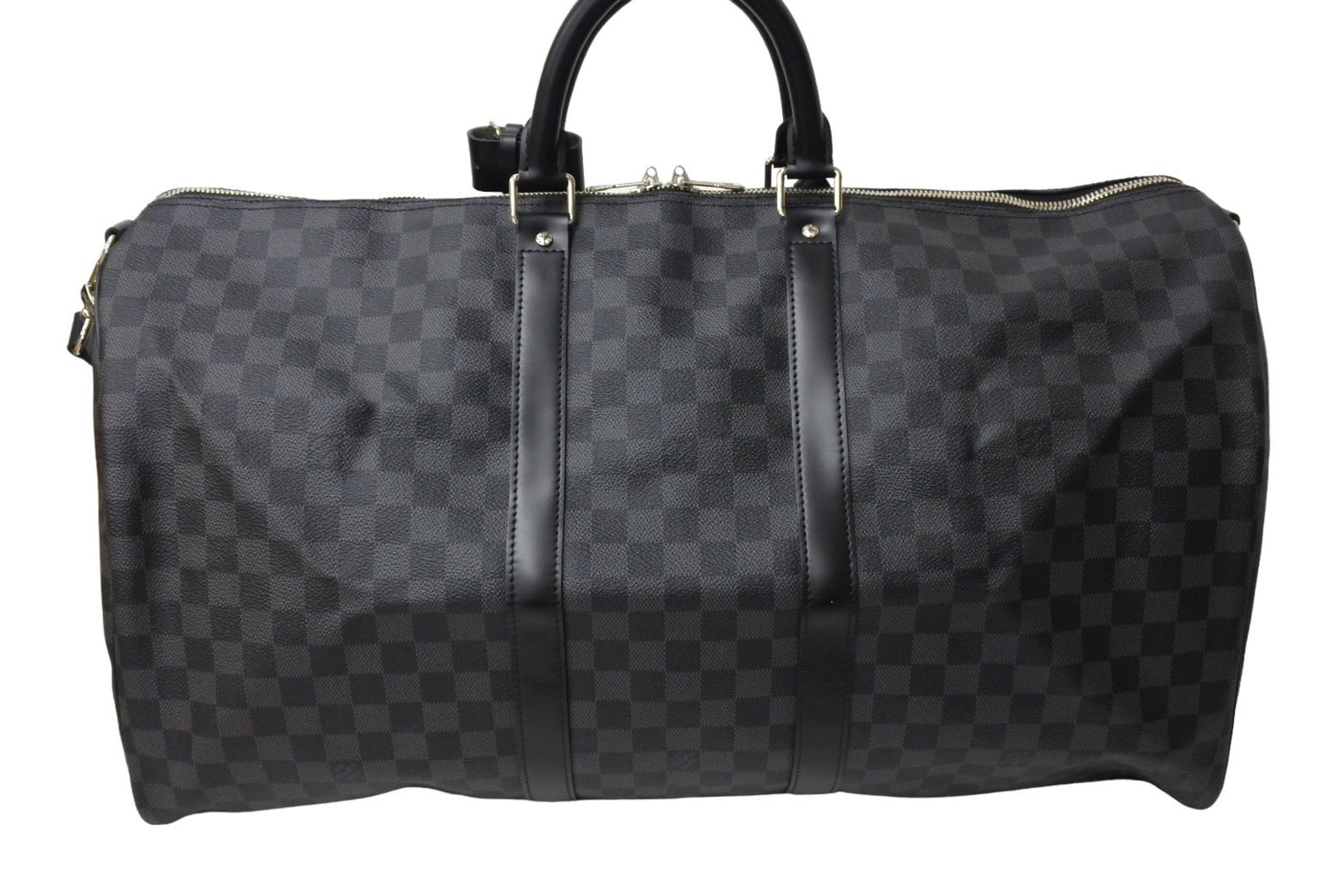 シンプルで都会的なデザインが魅力の「ダミエ グラフィット」のソフトタイプのトラベルバッグ。肩に掛けて快適に持ち運べるレザーストラップ付き。長期旅行でも安心のサイズ。