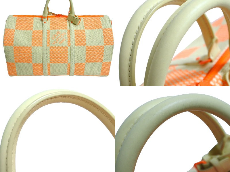 極美品 LOUIS VUITTON ルイヴィトン キーポル バンドリエール50 ボストンバッグ M57419 ラフィア オレンジ ベージュ 中古 66202