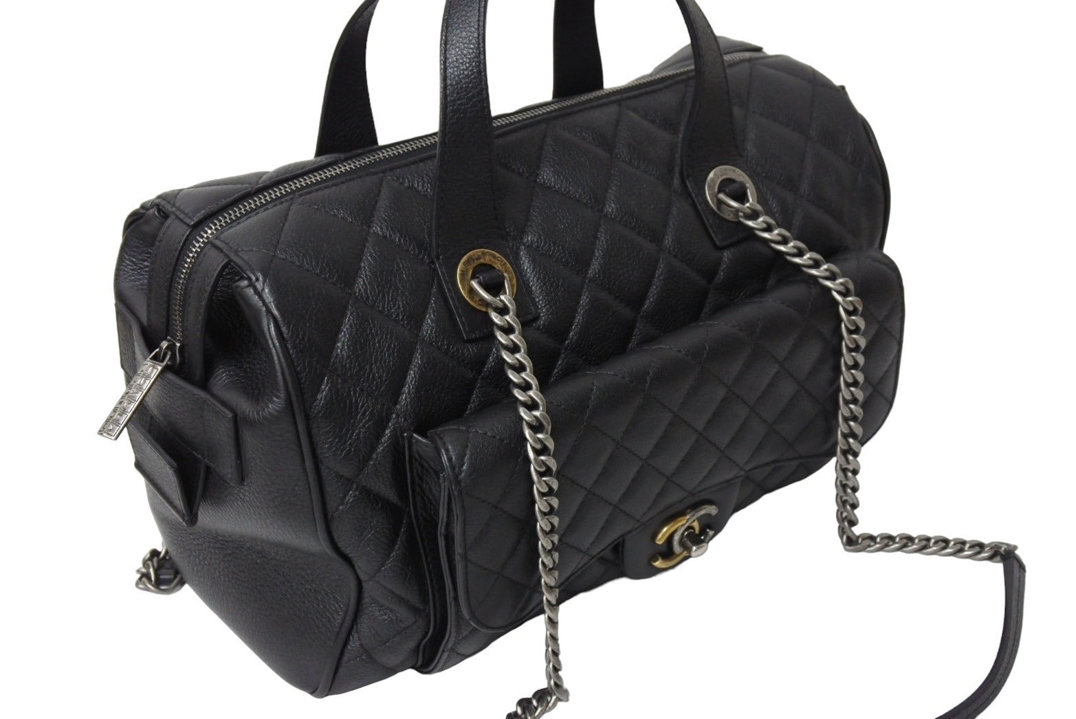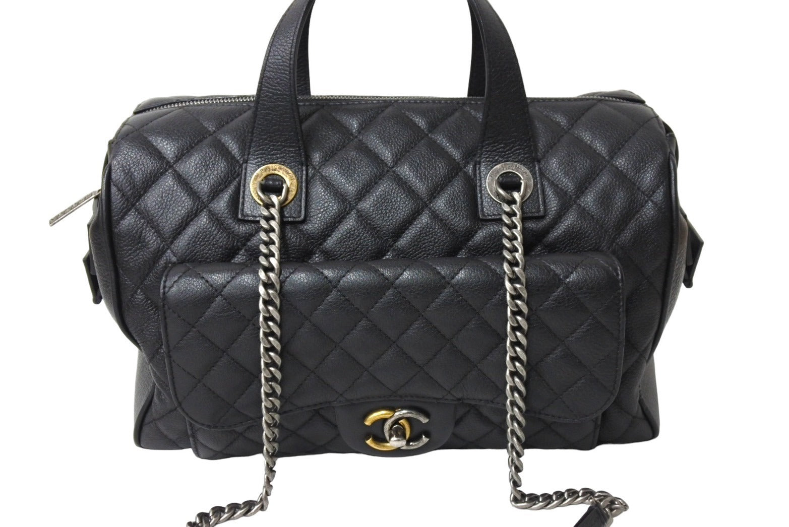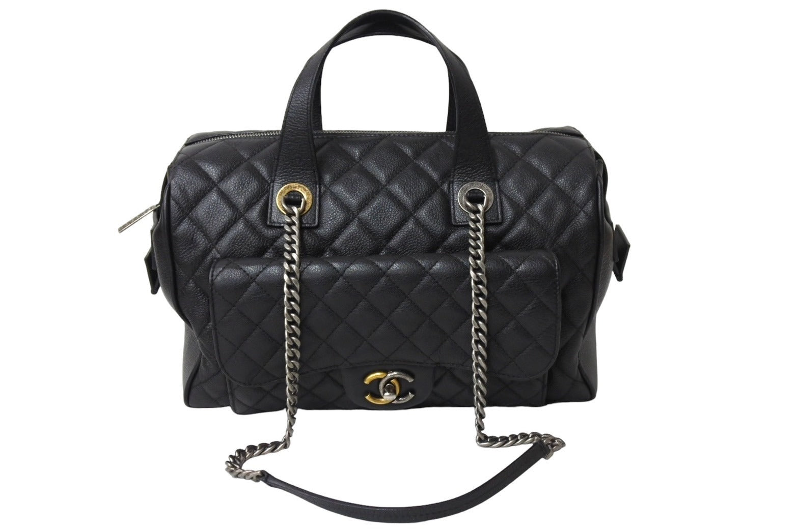 CHANEL シャネル 2WAYボストンバッグ マトラッセ 23番台 2016年 グレインカーフレザー ブラック シルバー ゴールド 美品 中古 67285
