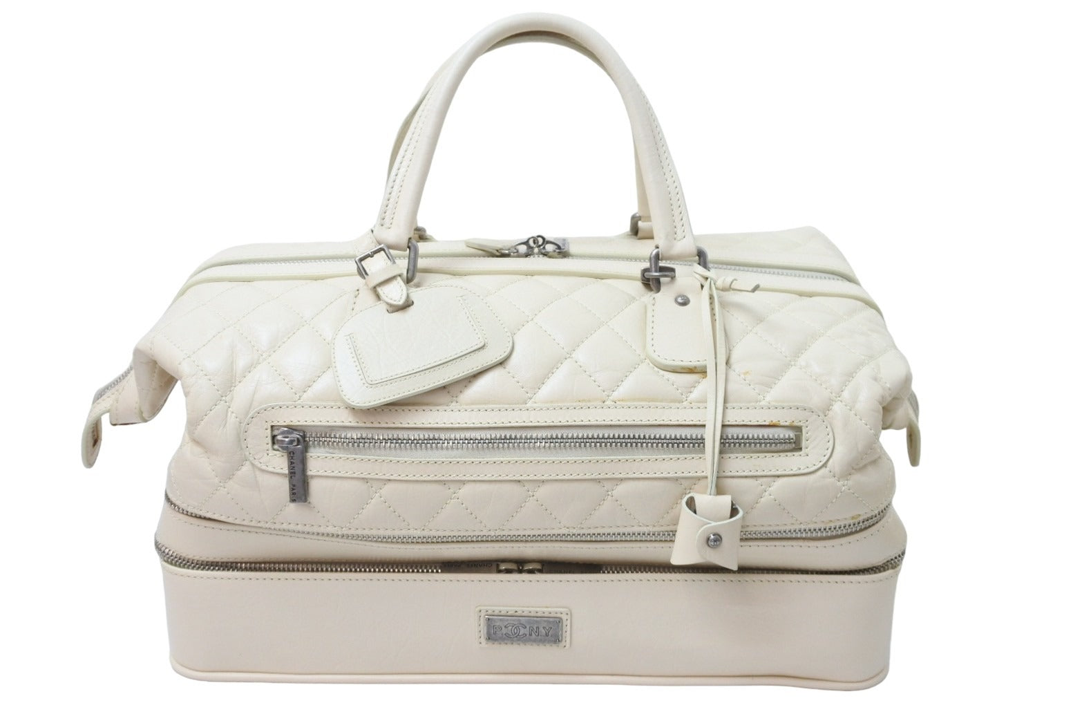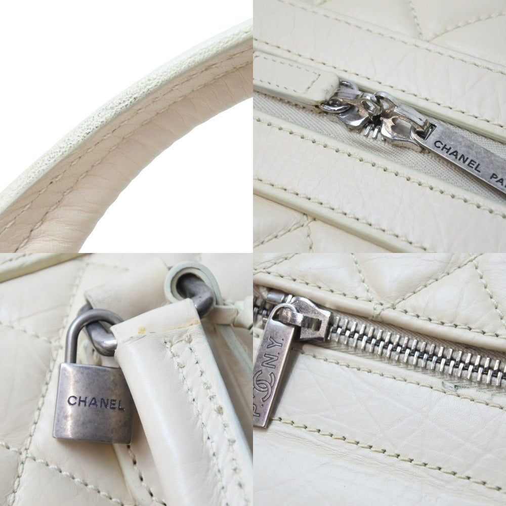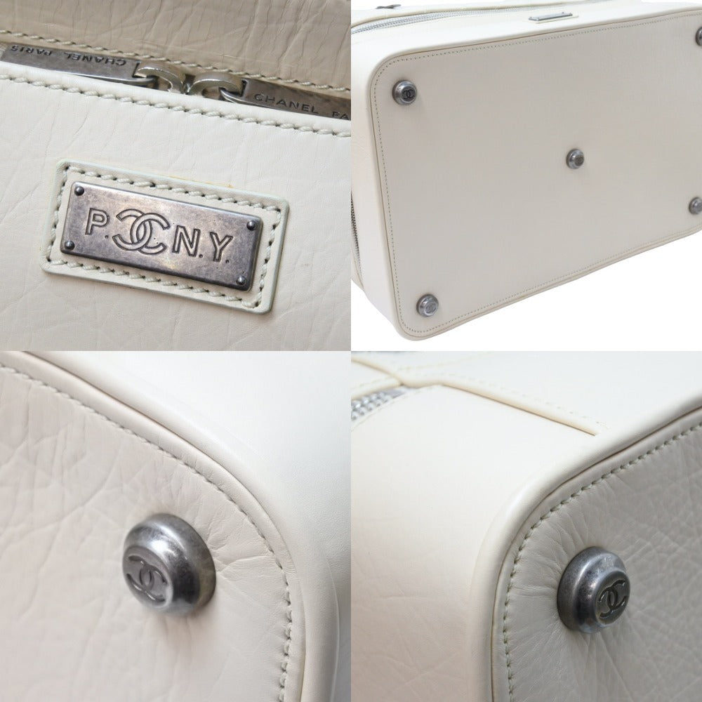 CHANEL シャネル ボストンバッグ パリ ニューヨーク 10番台 ココマーク ラムスキン アイボリー シルバー金具 中古 51498