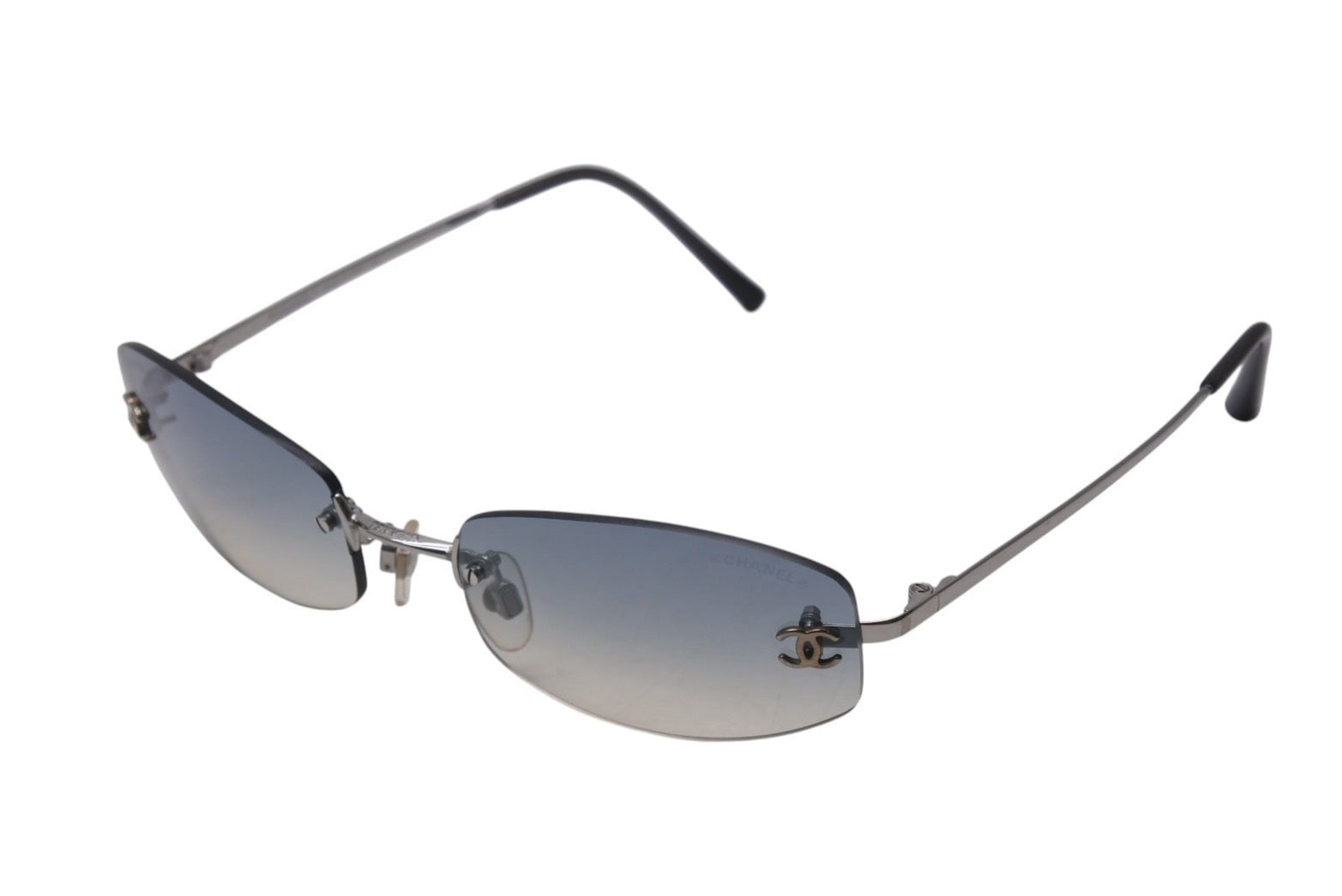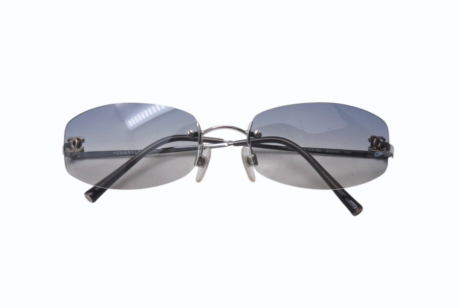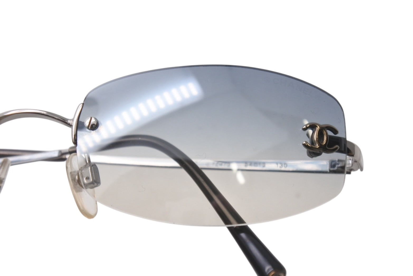極美品 CHANEL シャネル ココマーク サングラス リムレス 4002 ブルー グラデーション 小物 メガネ アイウェア 54☐19 130 美品 中古 4b000326