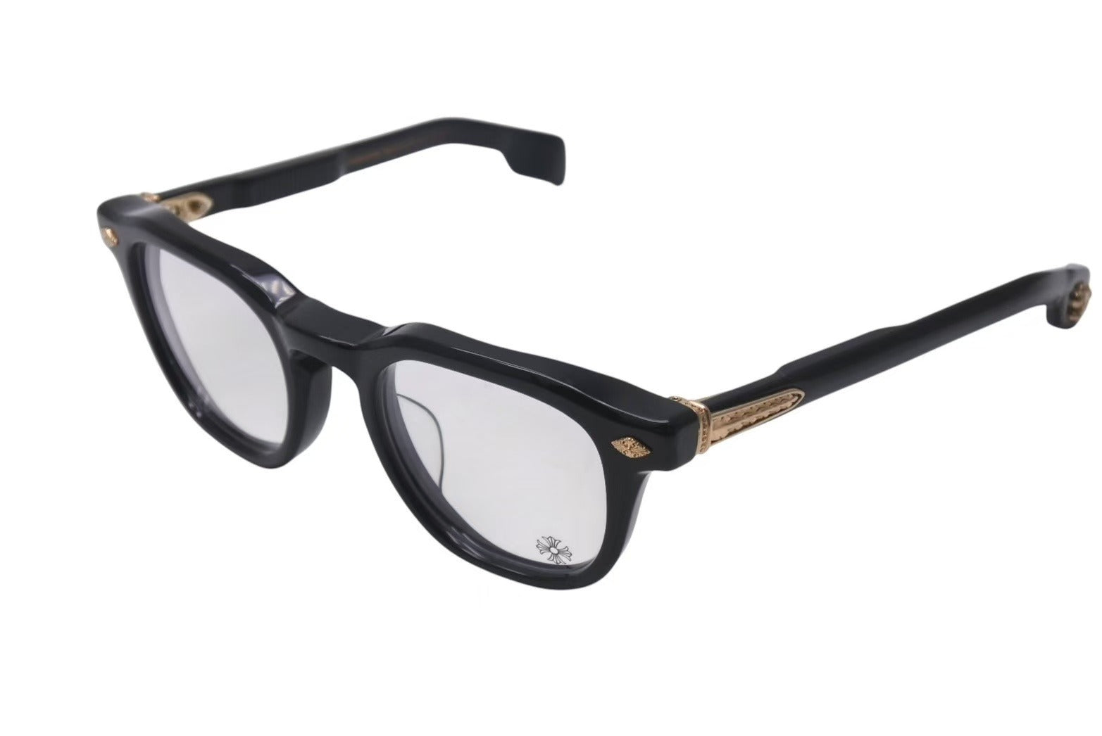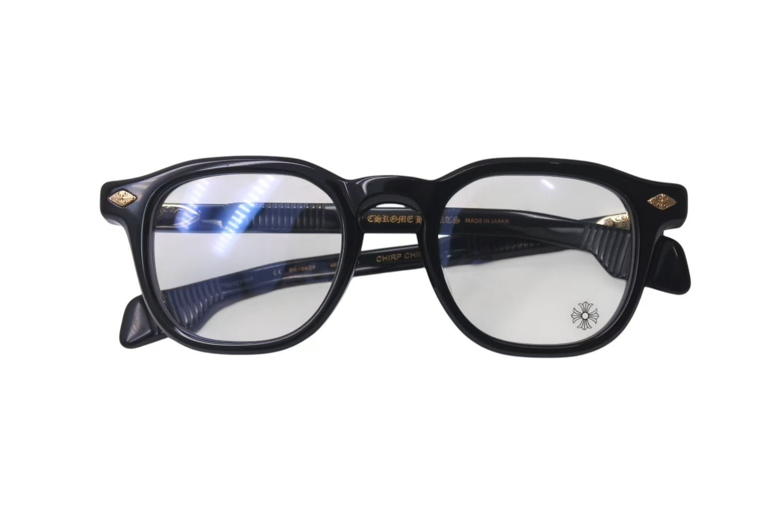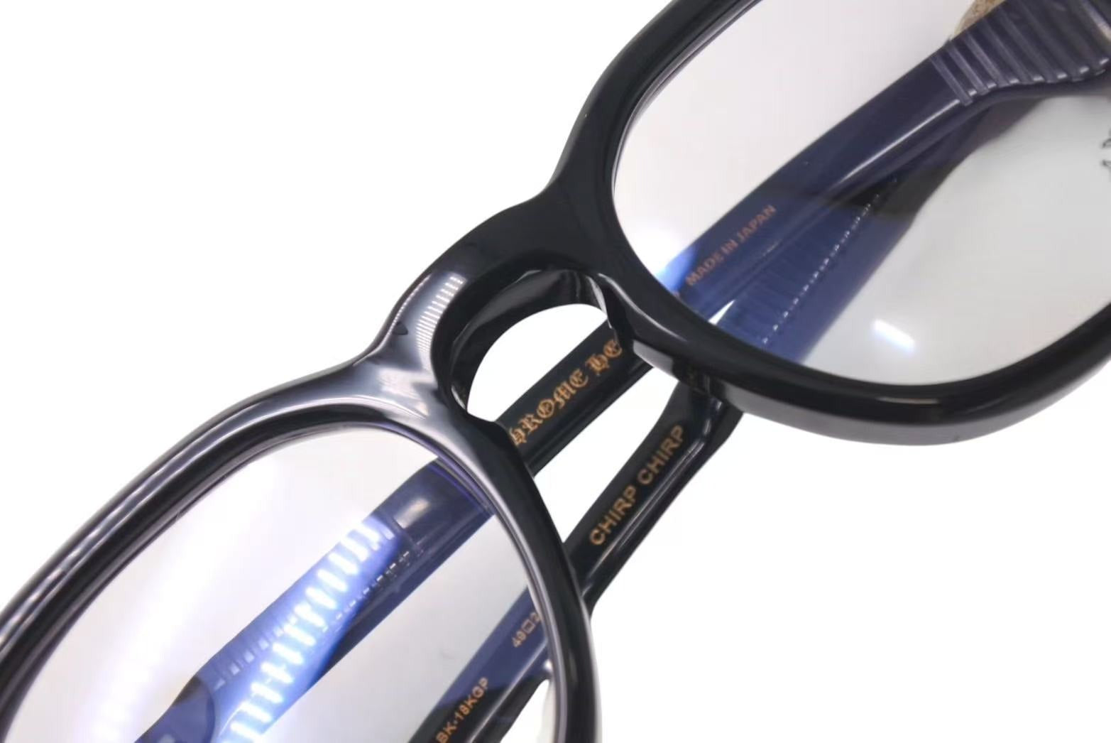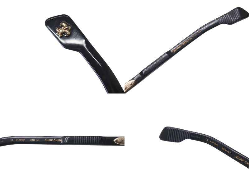 CHROME HEARTS クロムハーツ CHIRP CHIRP チャープ フレア メガネ プラスチック 18KGP ブラック サイズ49□23 美品 中古 4b001587