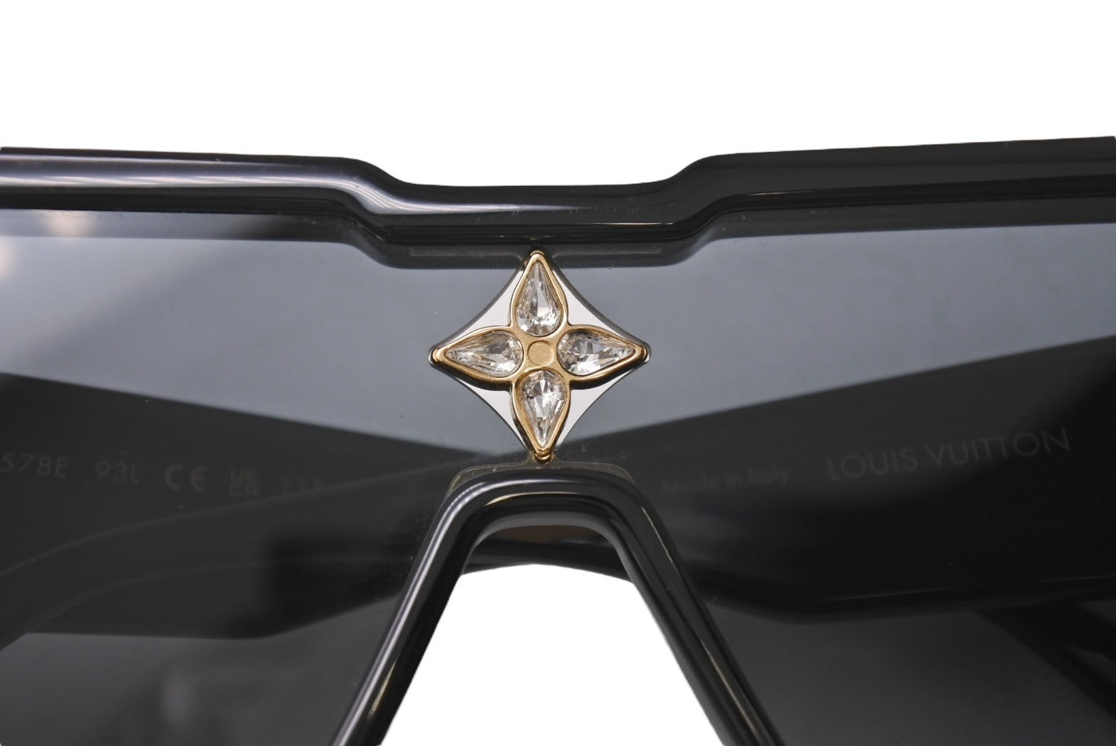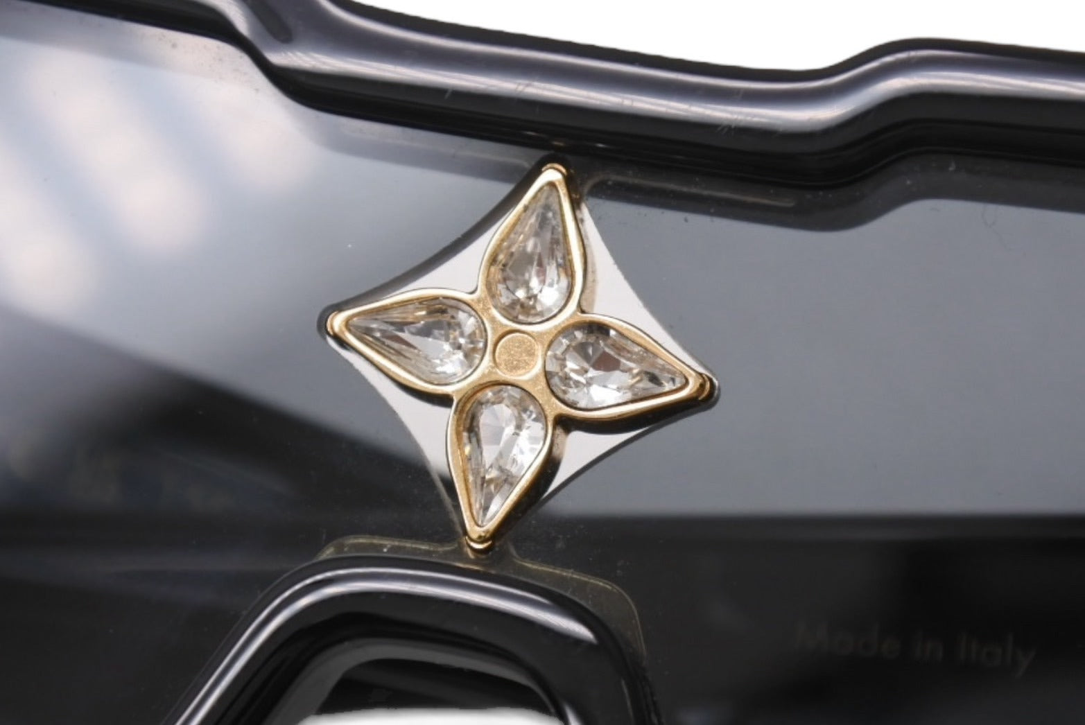 2006秋冬コレクションに登場したアイコニックなスタイルをモダンにアップデートした「サングラス サイクロン」。角型に仕立てたフレームと深く斜角を付けたフロントが特徴の大胆なスタイルが魅力です。オリジナルのバージョンから着想を得て再解釈したモノグラム・フラワー モチーフは、煌めくストラスをあしらってグラマラスな雰囲気に仕上げました。