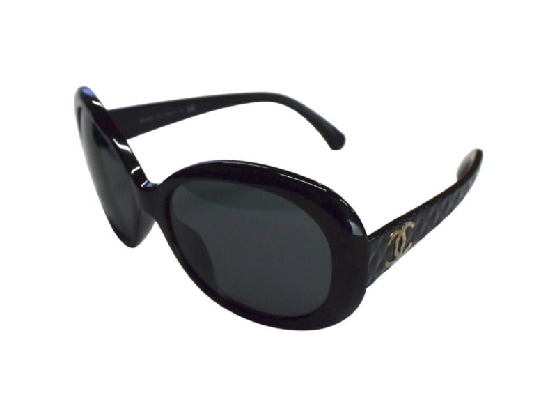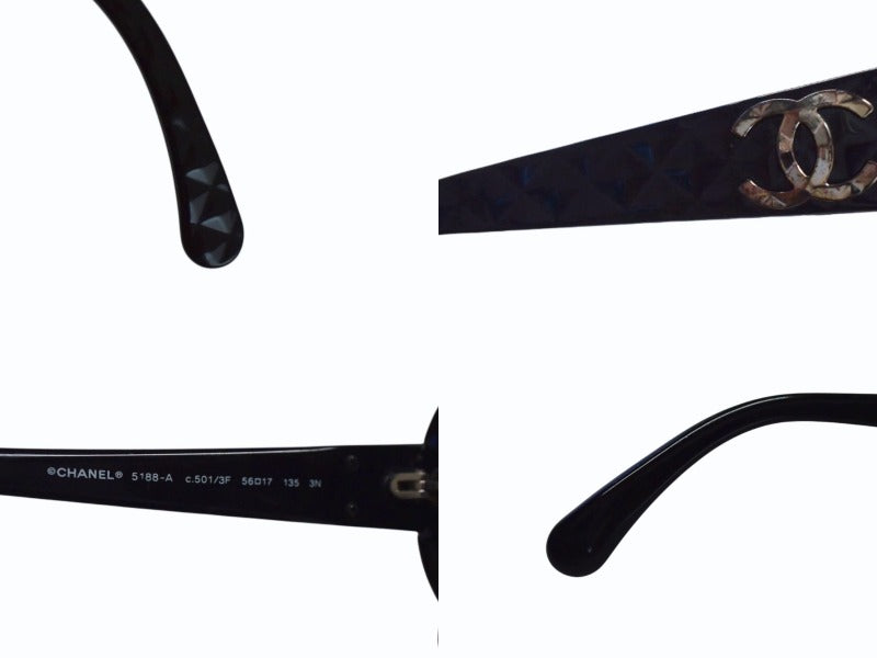 CHANEL シャネル キルティング ココマーク サングラス ブラック プラスチック 56☐17 5188 アイウェア 小物 ロゴ オーバル 美品 中古 4b003362
