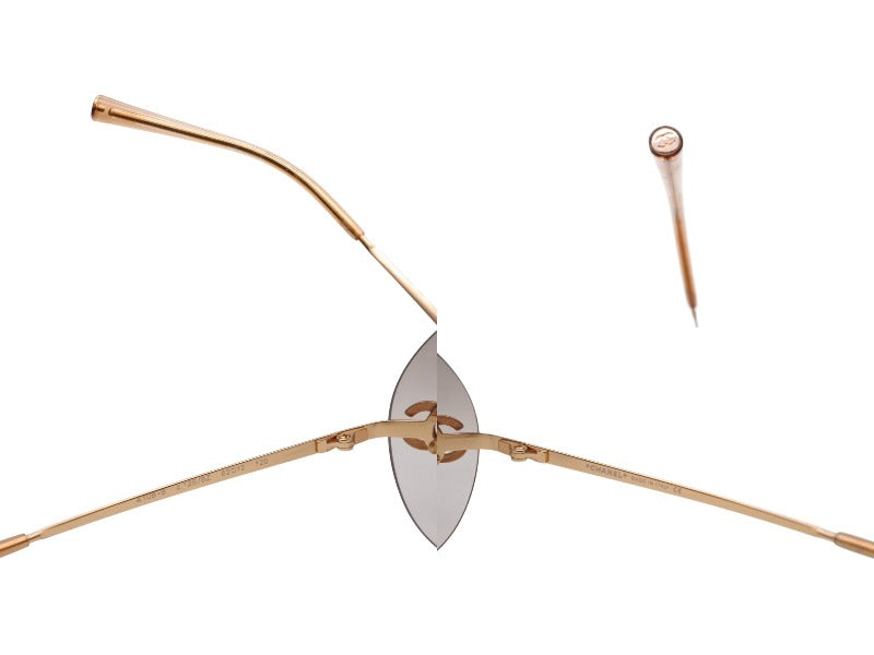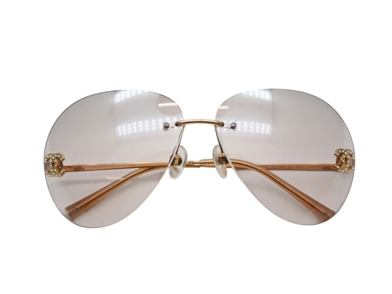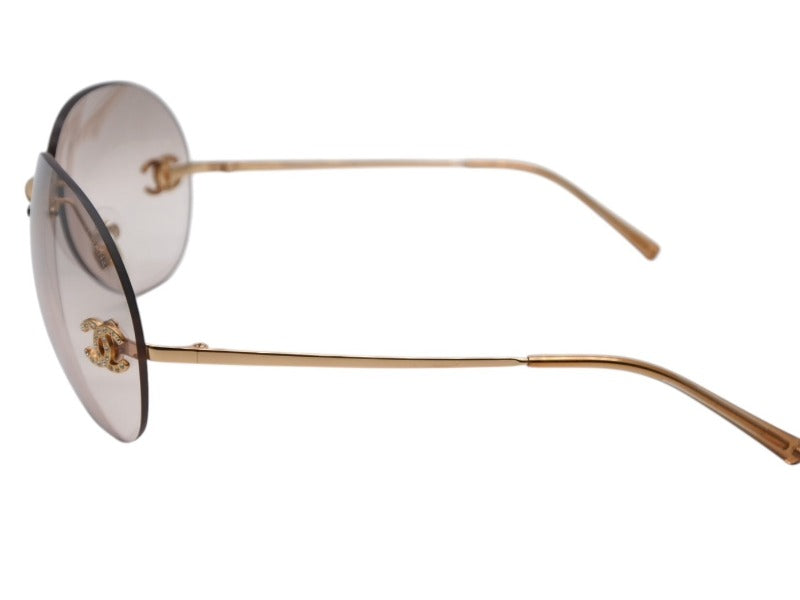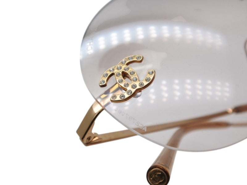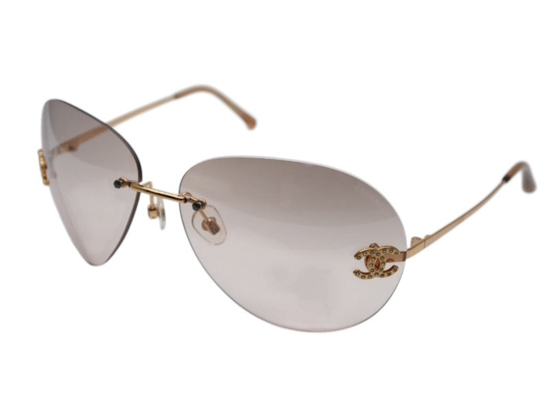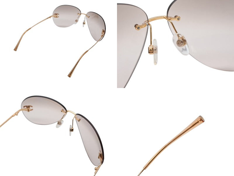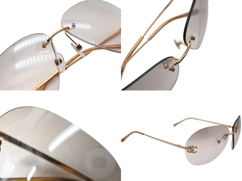 極美品 CHANEL シャネル リムレス ココマーク サングラス メガネ 4108-B GP ラインストーン ブラウン ゴールド金具 中古 4b006473