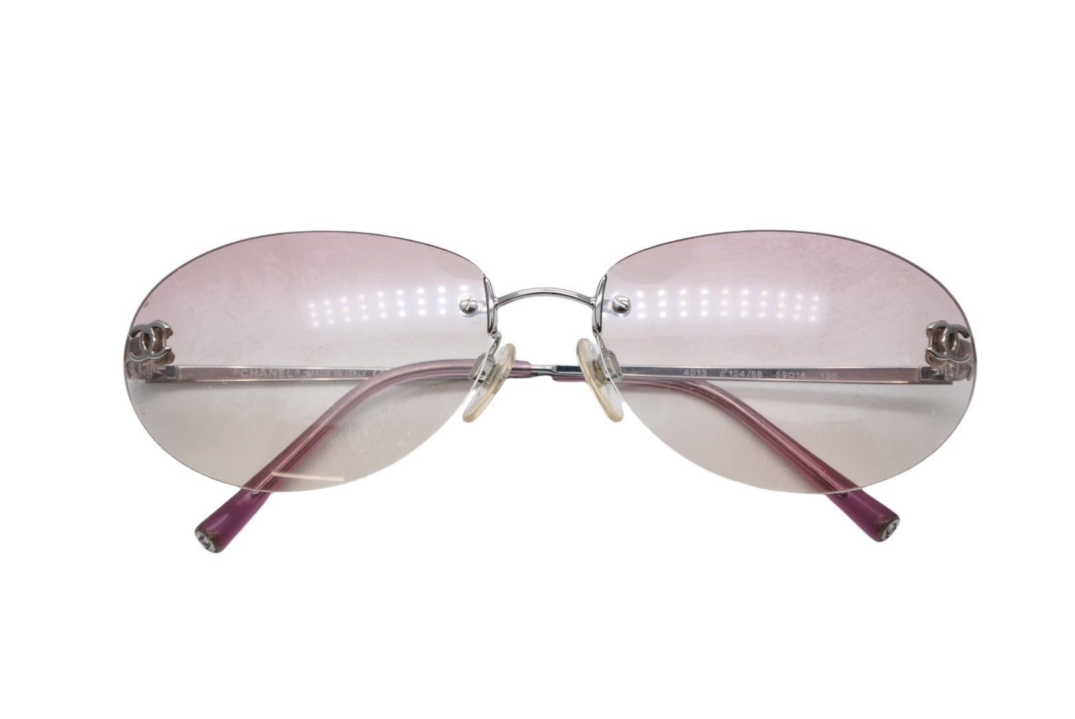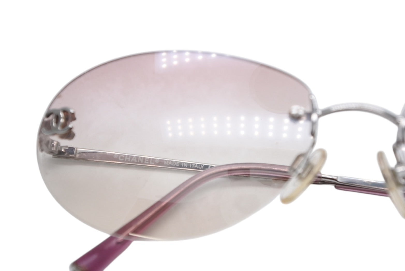 レンズにスレ、小傷、コーティング剥がれあり。テンプルにスレ、小傷、歪みあり。ノーズパッドに変色あり。その他使用感の少ない状態です。