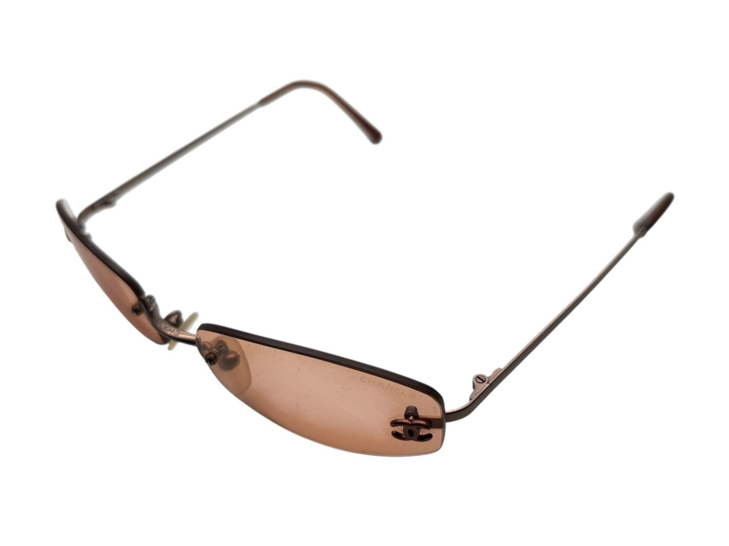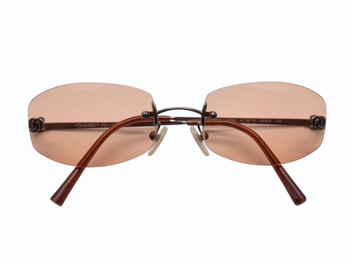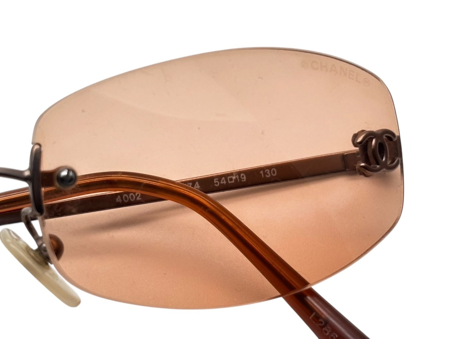 CHANEL シャネル リムレス サングラス 4002 c.116/74 サイズ54□19 130 ココマーク オレンジ ブロンズ 美品 中古 4b009486