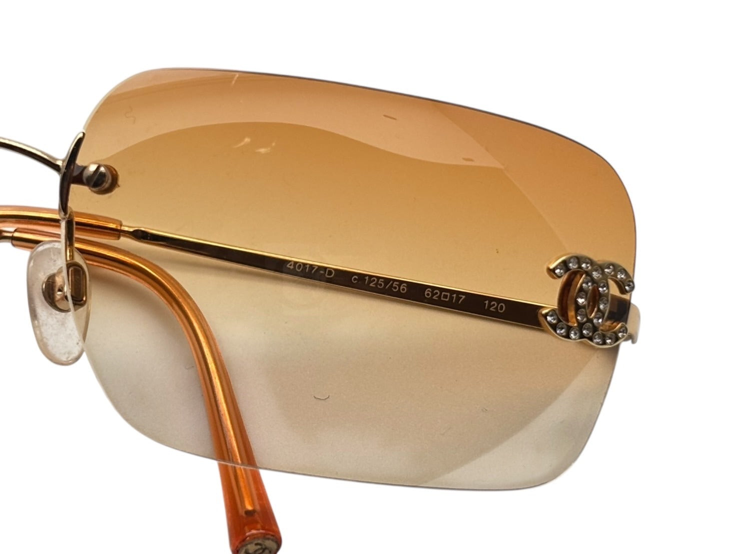 CHANEL シャネル リムレス サングラス 4017-D c.125/56 サイズ62◻︎17 120 ココマーク ラインストーン オレンジ 美品 中古 4b009805