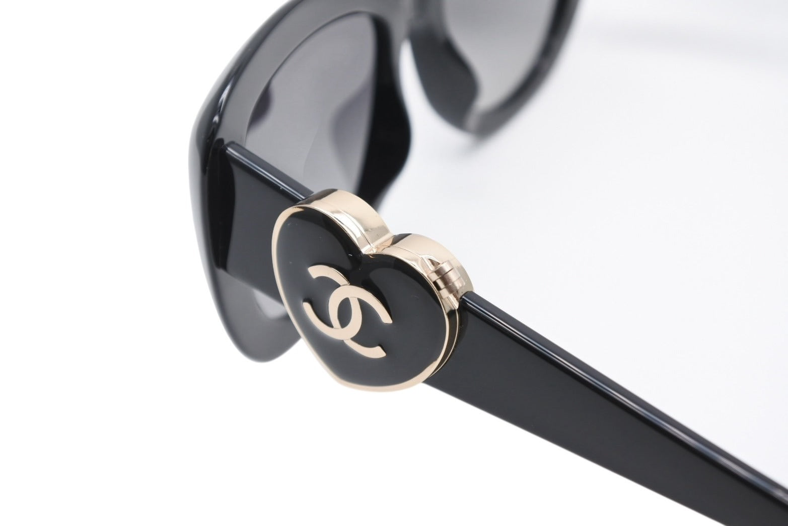 CHANEL シャネル サングラス アイウェア サイズ54□18 140 622/S8 ココマーク ハート ブラック ゴールド 美品 中古 4b010182
