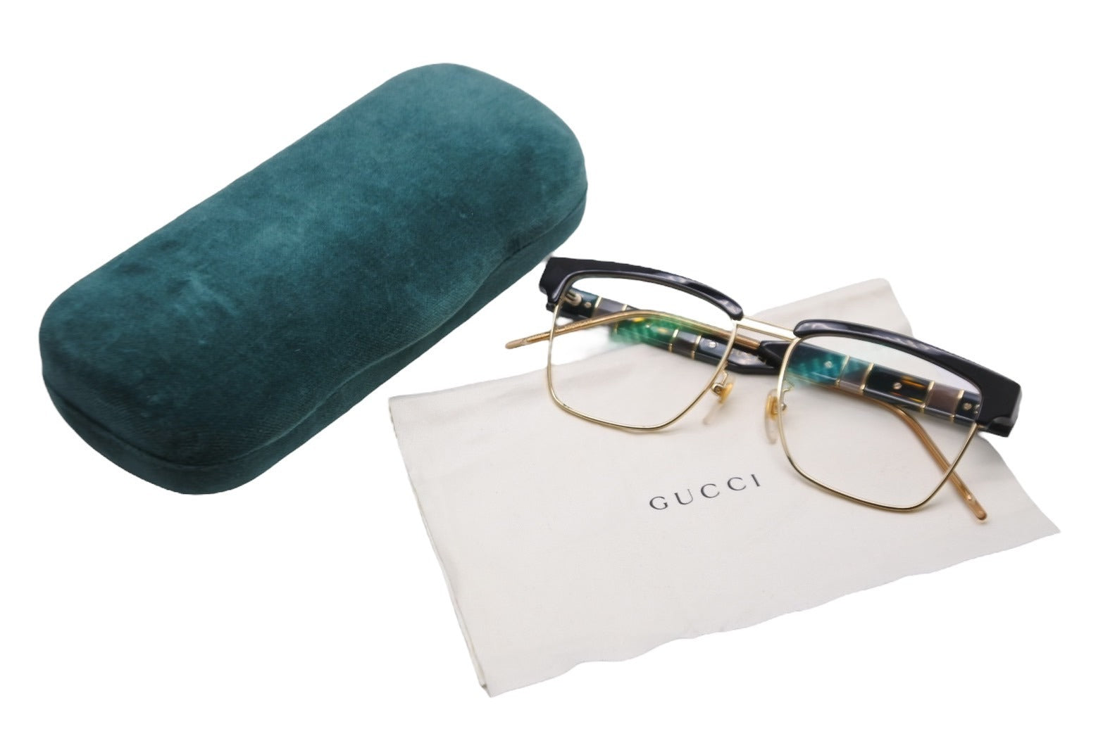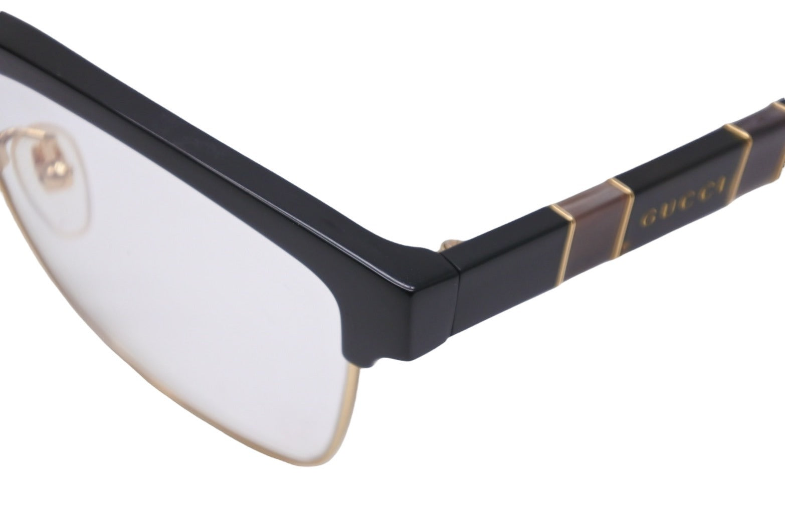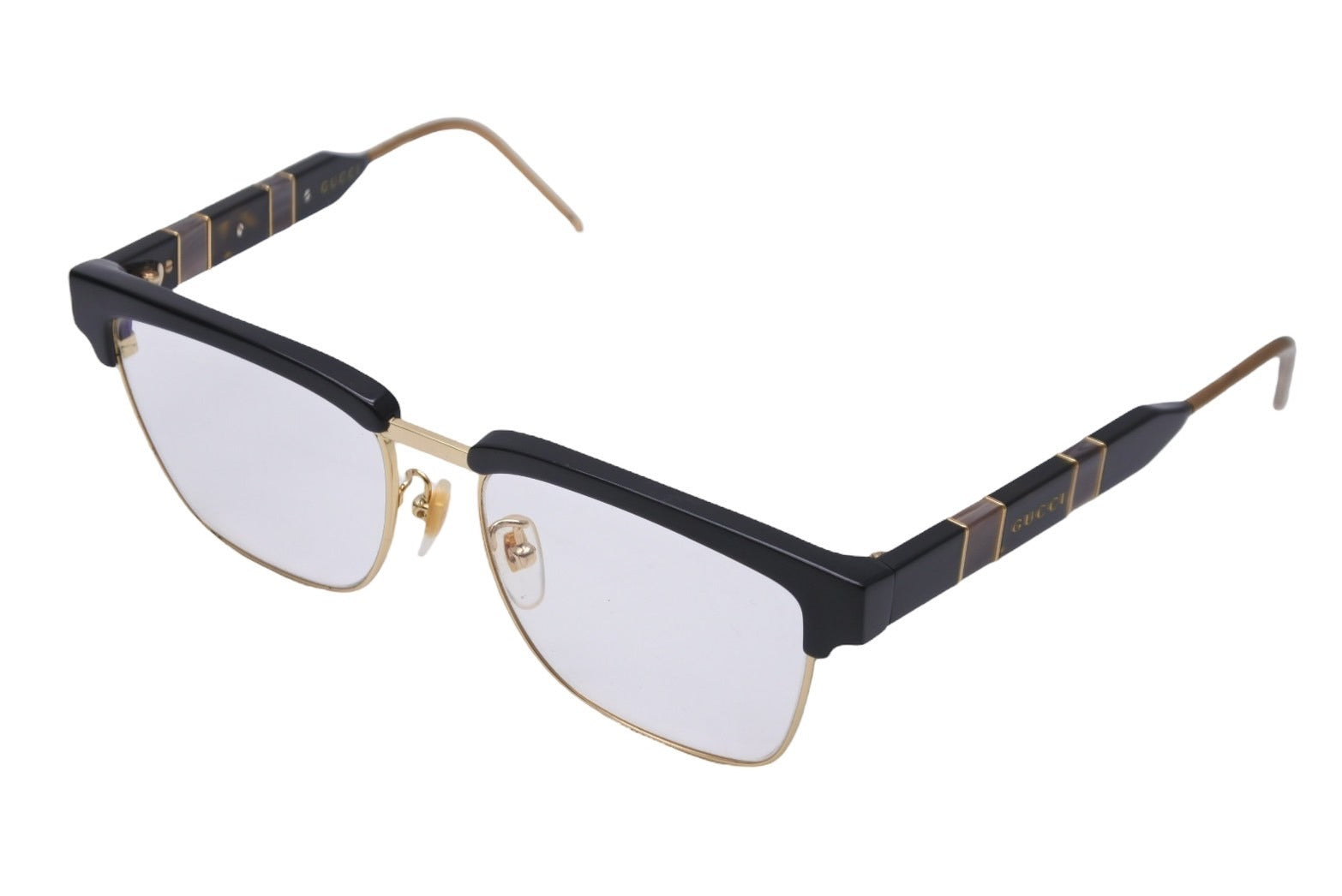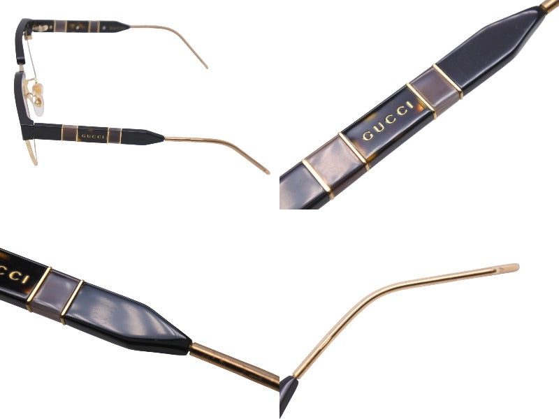 GUCCI グッチ サングラス メガネ マテリアルミックス スクエア型 52□16 プラスチック ブラック ゴールド 美品 中古 55310